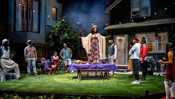 In spring of 2016, Holter's words were back on Chicago storefront stages with two plays that opened within a month of each other: Sender at A Red Orchid Theatre (where Michael Shannon is an active ensemble member); and Prowess back at Jackalope. Holter's The Wolf at the End of the Block followed in 2017, and in early 2018, the Chicago Tribune's chief theatre critic Chris Jones revealed that Holter's plays beginning with Exit Strategy were part of a planned seven-play cycle, with the final three plays scheduled to be produced over the following fourteen months. All the cycle plays would be set in the fictitious Chicago neighborhood of "Rightlynd," Chicago's imagined "51st Ward" (in reality, there are only 50 wards). The last of these seven plays, now called "The Rightlynd Saga," is Lottery Day, now at the Goodman Theatre. It follows the play entitled Rightlynd, produced at the regional Equity theatre Victory Gardens last fall, and Red Rex, which opened at the tiny but prestigious (and now Equity) Steep Theatre in January and closed on March 30th. Appropriately enough, Red Rex concerns a storefront theater company that is located in the now-gentrifying "Rightlynd" neighborhood. Lottery Day's staging at the GoodmanChicago's oldest, largest and I presume most generously budgeted non-profit theatreis a triumph of sorts for Chicago's storefront scene. Not only does it bring Holter to one of the stages of this vaunted company (that notably premiered two of August Wilson's plays), but also the director Lili-Anne Brown, who told me her resume was entirely in storefront theater before directing Hairspray at Milwaukee's Skylight Music Theatre last fall. The cast and design team have strong roots in Chicago storefront theater as well. The visibility of Lottery Day at Chicago's largest theatre, with its huge subscriber base and enviable advertising budget, will doubtless bring new audiences to Holter's work. However, I would caution against anyone using Lottery Day as their point of entry into this impressive writer's canon. Holter's desire to write a capstone play, bringing in at least six characters from the previous plays of his saga, feels more like a writing exercise than an inspired drama that can stand on its own. Lottery Days's premise is that Mallory (J. Nicole Brooks), described as the woman who "runs the block," has invited a group of neighbors and others in her circle for a backyard barbecue. Mallory has been a neighborhood activist, a shelterer to the homeless, and a friend and de facto mother to many in the neighborhood. Her guests for the barbecue include six characters from the earlier plays: the former assistant principal of Exit Strategy's closed school Ricky (Pat Whalen); the alderman's assistant Zora (Sydney Charles), seen in Prowess; a retailer from Rightlynd (Robert Cornelius); a restaurateur from The Wolf at the End of the Block (Tony Santiago); the theater's stage manager Tori (Aurora Adachi-Winter) from Red Rex; and a divorced, upwardly mobile single mom from Sender (McKenzie Chinn). There are also three new characters in addition to hostess Mallory. They include neighbor Vivien (Michelle Vazquez), an annoying divorced mom who has made a fortune buying distressed properties and building new homes like the one she lives in next to Mallory's old frame house; a married male friend, Avery (James Vincent Meredith); and a homeless wannabe rapper Ezekiel (Tommy Rivera-Vega). As the play unfolds, it becomes evident that Mallory has a darker plan for her party. She has come into a large sum of money and plans to give it away to whichever guest wins a contest she has devised. The first act, about 70 minutes long, introduces the characters (or for those familiar with the earlier plays, re-introduces them), and the sheer number of dramatis personae leaves them mostly faintly drawn. (It's possible those who have seen more of the earlier plays than I have might benefit from that prior exposure to the characters, but we were well into the second act before I recognized Zora from Prowess or Tori from Red Rex.) Holter has a unique talent for creating characters who annoying talk too much. One such character per play is funny. Five such people (Mallory, Zora, Ezekiel, Vivien and Ricky) is ... five times as annoying. This exposition makes for a very long set up and much of the first act involves these characters speaking over other, shouting, and making insults and jokes (many of which are quite funny), with most of it at a high volume and pitch. Brooks's Mallory is particularly given to shouting and I found much of the first act unintelligible. In fairness, the audience was howling in laughter most of the time, so it's possible I may simply not have understood all the cultural references and slang. Mallory's contest has three stages; the first is a scavenger hunt for which the actors stay on stage hunting while the audience takes an intermission break. The 50-minute second act is more comprehensible than the first, with less overlapping dialogue and more dramatic tension as the backstories and underlying conflicts emergemost significantly, some violent events of earlier years that explain Mallory's behavior. The final stage of Mallory's contest owes much to the "Get the Guests" game from Who's Afraid of Virginia Woolf?: each guest has to endure verbal abuses from all the other guests for one minute without reacting. It's a device that brings tensions to the forefront and leads to the play's conclusion, but feels derivative and contrived and not at all representative of Holter's talent. Having seen only two of the previous plays in the "Rightlynd Saga," Prowess, which I loved, and Red Rex, which impressed me less, I can't judge the saga in its entirely. Lottery Day certainly succeeds in its observations of this changing neighborhoodchanges that dispossess its longtime residents in the name of urban renewal. Holter's end point of Lottery Day seems to be that the neighbors are ultimately abandoni