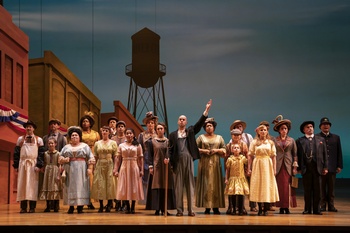 The good news is that Zimmerman has delivered a respectful production that doesn't try to reinvent musical. Her visual skills, in partnership with set designer Daniel Ostling, add some whimsy to suggesting rural and small-town Iowa of the 1910s, starting with a charming and bumpy train car for the opening "Rock Island" scene, and opening up to the town square of River City with cornfields on the horizon. Later, she uses cutouts of the Wells Fargo wagon that range from tiny when it's first spotted off in the distance up to full size when it finally arrives. Beyond those scenic touches, she gives us a faithful and respectful interpretation that honors the piece known to so many through the 1962 film version and countless stock and school productions. Zimmerman and the Goodman have brought in Broadway's Denis Jones (Tootsie, Honeymoon in Vegas) to do the choreography and he delivers the goods. There are clever book-carrying steps for the extended "Marian the Librarian" dance and a rousing production number for "Shipoopi." The ensemble of mostly Chicago-based performers execute the dances beautifully, are vocally impeccable and genuine in their many bit roles. With an ensemble of just eight members, though, the huge proscenium stage at the Goodman feels a bit bareespecially with the sets that emphasize the open spaces of the Midwest farmlands over small-town architecture. For those who really love this show, the film version is indelible and comparisons to it inevitable. It may be a thankless task for any actor to take on the iconic role of Harold Hill, the con man immortalized by Robert Preston on stage and in the film (though the likes of Van Johnson, Forrest Tucker, and even Bert Parks seemed to get by in stock and touring productions). Zimmerman's Hill, Geoff Packard, seems to initially go for a different take on the characterinitially playing up his sleazier sidebut Packard's unable to find the charisma that would allow him to sell hundreds of dollars' worth of band instruments and uniforms to the gullible townspeople and the charm to win over the spinster Marian the librarian. He can't convincingly communicate a character arc that would show us the transformation and redemption the script details. Packard's co-star Monica West, as Marian, has a lovely soprano that doesn't disappoint but she doesn't deliver the nuances that make Marian an appealing heroine. Marian is smart and strong in a society that doesn't want that of women, and romantic yet clear-eyed and practical. So if Packard has a rough road through comparisons to Preston, West's is not much easier competing with the memories of America's one-time sweetheart, Shirley Jones. Supporting players by and large have better luck in comparisons to the film, which boasted one of the greatest collections of movie character actors ever in its ranks. Mary Ernster is a perfect Mrs. Paroo and Heidi Kettenring is a younger, but sweetly flustered mayor's wife. Matt Crowle is a hoot, as always, as the anvil salesman who seeks to do in Harold Hill. Meredith Willson's 1957 musical is perhaps as insightful about Americans as are many of the straight dramatic classics that have lived on the Goodman stage. With The Music Man, he slyly took on issues of prejudice, class divisions and groupthink by showing it among rural people of an era 40 years earlier than the decade in which it premiered. We were able to recognize those flaws without having to confront them in our present-day selves. His messagesof the importance of visualizing something better that we don't yet have; and the uplifting power of artare themes we always can benefit from by being reminded of them. As a longtime lover of The Music Man, I appreciate the status it's given by receiving a production by one of the nation's leading regional theaters. Knowing that commercial theaters can (and in Chicago recently have) do this show as well as it's done here, one still has to wonder if we needed the likes of the Goodman to produce it. The Music Man, through August 18, 2019, at Goodman Theatre, 170 N. Dearborn, Chicago IL. For further information and tickets, visit www.goodmantheatre.org or call 312-443-3800. |