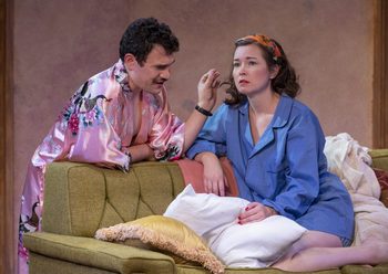 Rudy Galvan and Emily Tate star as Elyot Chase and Amanda Prynne, a formerly married couple who find themselves ensconced in adjoining suites in a French hotel as each begins a new marriage. With that premise, you expect a screwball comedy, and Coward does not let you down, as the two characters open with individual scenes on their respective parts of the hotel's terrace before discovering their unexpected and unwelcome neighbors. We first meet Elyot and his just-minted bride Sibyl (Alexis Green) as they take in the sunset over the Mediterranean. Their conversation is peppered with inanities that reveal Sibyl's not very well hidden jealousy over her husband's life-defining first marriage, which ended in a rancorous divorce after he and his wife Amanda realized that their sexual fireworks could not compensate for their equally combustible relationship. Elyot insists that Sibyl never speak of her again, but she has clearly heard way too much about Amanda to let it go. Once their conversation takes them indoors, Amanda comes onto the terrace from her own rooms, along with her new husband Victor (Matthew Martinez Hannon) and they begin a very similar conversation, this one centering on Victor's need to discover more about his new wife's chaotic first marriage but echoing a lot of what Elyot and Sibyl said. Neither Amanda nor Elyot has much good to say about their exes, but their new spouses' insistence on learning everything about them suggests a tension that belies how much they claim to love each other. Of course, the first time Elyot and Amanda find themselves outside alone and see each other, those old fireworks are renewed. They both try to deny it, but then they hear the hotel's orchestra play what was clearly one of "their songs," after which they can't keep their hands off of each other, and it does not take long before they decide to abscond to Paris and figure out what happens to their marriages later. These are the kind of "careless" people Hemingway and Fitzgerald wrote about, and they are all the more careless because they have to know how incendiary they are as a couple: a new romance may start out hot but, at some point, it is going to explode. Director Frank marks this production as his own from the outset. Before the action begins, we meet a woman who (speaking French) tells us exactly what is happening. An exaggerated artsy type with a long cigarette holder, she is played wonderfully by Bradley Halverson, who will later play a housekeeper named Louise. Halverson's challenge is to play the over-the-top artsy but hyper-controlled French woman while simultaneously providing narration backed by huge body movements and expressions so non-French speakers will be able to follow along. They succeed brilliantly, providing a clear indication that this farce will be even sillier than usual. That thought is echoed when Elyot and Amanda hear their music, which seems to affect both of them viscerally, contorting their bodies until they come together in a tango. Tango, the dance that holds the most tension and potential for violence of any dance form, is a perfect choice. It is both extremely sensual and seductive and simultaneously angry and foreboding. There are a lot of similar touches Frank adds, but this is both the most obvious and the best one. The play takes place on a Joe Schermoly set that, in Act One, drips with elegance (quite literally, as gauzy curtains hang everywhere), and then, in an Act Two that takes place in a hideaway flat in Paris, gets dressed down quite a bit and filled with cheap-looking furniture. Between that set change and the mess left onstage after the explosive second act, this is an insane show for the two-person running crew. The title Private Lives comes from something Amanda says to Victor in an attempt to explain the complexity of her previous marriage: "I think very few people are completely normal really, deep down in their private lives. It all depends on a combination of circumstances ... That was the trouble with Elyot and me, we were like two violent acids bubbling about in a nasty little matrimonial bottle." Both she and Elyot have seemingly decided to marry the exact opposite sort of person. As Elliot says to Sibyl, "Love is no use unless it's wise, and kind, and undramatic. Something steady and sweet, to smooth out your nerves when you're tired. Something tremendously cozy and unflurried by scenes and jealousies." Coward, however, understands that "if the right spark is struck, there's no knowing what one mightn't do," and that love and hate are so inexorably intertwined that one can naturally bleed into the other, at least for as long as the inevitable fight lasts. Private Lives runs through November 13, 2022, at Raven Theatre, 6157 N. Clark St, Chicago IL. For tickets and information, please visit www.raventheatre.com or call (773) 338-2177. |