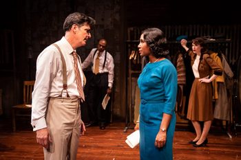 Trouble in Mind, directed at TimeLine Theatre by Ron OJ Parsons, is not afraid of that fight. Though ultimately it becomes a nasty battle between two characters, it is basically an ensemble piece that, from the start, highlights the ways in which Black performers were routinely belittled by the white men in charge of the plays. The play is only a few minutes old when veteran singer Wiletta Mayer (Shariba Rivers), cast as an actress in a drama, gives critical advice to John Nevins (Vincent Jordan), a neophyte who wants to make acting his career, telling him to be sure to laugh at everything the director says and not to argue. This "Uncle Tomming," she says, will keep him out of trouble and enhance his chances of making it. Clearly, the "trouble" is not just in someone's mind. The rest of the ensemble trickles in: Gus Van Swearingen as Bill O'Wray, a regular Broadway presence; Jordan Ashley Grier as newcomer Judy Sears; Tarina J. Bradshaw as actress Millie Davis; Kenneth D. Johnson as Sheldon Forrester, an actor who is also the production's designated envoy to Equity in case of disputes; Charles Stransky as 78-year-old house manager Henry; Adam Shalzi as stage manager Eddie Fenton; and Tim Decker as director Al Manners. All except for Stransky and Shalzi eventually become engrossed in the racial issues here (though Stransky's character is an Irishman who understands unequal power struggles). Their task: to put on a play about a Reconstruction-era conflict regarding a Black man (John Nevins) trying to take advantage of his newly acquired right to vote. In their way: among other things, interpersonal antagonisms that arise among cast members and the director; his violent temper and racist treatment of his actors and specific (though at times unarticulated) expectations he has of them; and issues with the script's requiring a mother to turn her own son in for what will surely be a lynching. It is this last matter that ultimately destroys any hope of harmony here and provides the major element of Trouble in Mind's clearest conflict when Wiletta, who has been struggling throughout to adapt to Manners' instructions regarding motivation, bitterly argues that she simply cannot find anything that would motivate her character to turn over her son. Rivers is outstanding, especially in a second act in which Wiletta takes a vehement stand against the director, whose vision of the play turns all of the Black characters into simpering, bent-over caricatures of real people in real situations. (Manners' version of the play is so badly blocked, constantly featuring clumps of people, that it would never have made it to Broadway. Parsons, however, has a lot of fun with this, getting comic joy from seeing those clumps move and change in unison.) Rivers is not the only actor to shine in Act Two. Decker's performance here is awesome: Manners' actions and default mannerisms and choices are clearly racist to a 21st-century audience (and even to the Black members of his cast), but he honestly does not think of himself that way. Midway through the act, Decker gives a long, emotional monologue about his own indoctrination into racial issues, and it's the first time the audience becomes aware that he is not just a white guy on a bigoted power trip but someone who does believe in a new society. When Manners asks, in sincere confusion, "Where the hell do you think I can raise a hundred thousand dollars to tell the unvarnished truth?," it becomes clear that he is doing all he feels he can do in his era, even if his cast doesn't accept that. In addition, Johnson and Swearingen get moments in the spotlight–quite literally, in Swearingen's case, as lighting designer Brandon Wardell gives him a special light for a monologue O'Wray delivers to a political crowd–punctuated by (intentionally goofy) canned applause. Johnson's monologue is more low-key but far more powerful, as Sheldon describes in painful detail an actual lynching he witnessed as a boy. And even though the rest of the cast doesn't get this kind of moment, it's clear that Childress understood how to give her actors enough to build on. We even learn a lot about Henry, who in another's hands might have been a simple walk-on character. And the intentionally humorless remark that Judy believes having to return to her life in Bridgeport is in any way similar to the struggles of her castmates absolutely defines who this mostly clueless character is. Watching this play, which Parsons directs with such a keen mind for pacing that the 2:15 showtime (including an intermission) seems to take no time at all, anyone can see that the fact that Childress was largely ignored in her lifetime (she died in 1994) is unconscionable. She could have easily been as celebrated as Lorraine Hansberry and more recent artists like Suzan-Lori Parks or Lynn Nottage. Trouble in Mind is not her only legacy but, if it were, this production proves that it would be enough to celebrate her as a foundational Black theatrical voice. Trouble in Mind runs through through December 18, 2022, at TimeLine Theatre, 615 W. Wellington St., Chicago IL. For tickets and information, please visit timelinetheatre.com. |