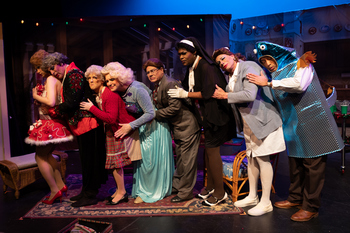 The Lost Episodes stage series began in 2017, and the four girls are fierce (this time) in trying to prevent the closure of the Shady Pines Rest Home. As you will undoubtedly recall, Dorothy's mother, elderly Sophia Petrillo, escaped the home at the beginning of the Susan Harris-produced NBC TV series, which premiered in 1985. In a tale of surprisingly authentic smiles and tears, we are told in The Lost Episodes that Sophia was exaggerating just a little about the poor quality of this particular rest home. The living room and kitchen in this The Golden Girls: The Lost Episodes are lovingly recreated by Christopher Rhoton, inside the Hoover-Leppen Theatre. And the overall impact is delightful, thanks to the utter seriousness taken by all concerned in approaching this sure-fire comedy, smack-dab in the middle of modern American commedia dell'arte. The script by David Cerda is wonderfully in line with the canon. It's funny and sweet, and plenty naughty enough, even for the like of you. In a strangely endearing and metaphorical way, it's a comfy old 1980s sofa to rest on and snuggle into for 90 short minutes, when you should be off in school. Lost Episodes playwright David Cerda is dour and gimlet-eyed as Dorothy (the character originated by Bea Arthur), Ryan Oates is relentlessly troublesome as Sophia (Estelle Getty), and Grant Drager is saucy and insinuating as Blanche (Rue McLanahan). All of them meet or often exceed expectations. But special mention must be made of Ed Jones, who is beautifully nuanced in his portrayal of Rose (Betty White). A Rose is a Rose is a Rose, in this production. St. Olaf stories included. The supporting cast is in it to win it, as well. The girls go to Shady Pines, and are nearly sucked in as new patients themselves when greeted by Nurse Ursula (Terry McCarthy) and volunteer Esther (Michael Rashid). The home's residents on stage are flawless: Clara (Lori Lee, who actually plays multiple roles) and–at this performance–Robert-Eric West, as Nancy. Miss Lee is genuinely touching as a dementia patient, and Mr. West is highly credible in this performance (till this weekend he was merely on standby as an understudy for Danne W. Taylor, in addition to serving as costumer in this dragalicious extravaganza). Eighteen stars, Mr. West. But wait, there's more: a mysterious visitor keeps reappearing, played with gentle insistence and admonitions, and 100% stage presence, by Coco Sho-Nell; and Jamie Smith is wonderfully naive as Bob Hope. Rich-voiced Michael S. Miller is as gregarious as any Florida politician as Councilman Hardin, who must be inveigled into the girls' plan to save the rest home in Miami. It's funny to think that a part of our emotional lives consists of the joyful memory of these pre-existing fictional characters, that they should merit another look. But if you liked the original TV show, you'd be hard-pressed to find a better way to rekindle your softer, sentimental side than with this affecting tribute. The Golden Girls: The Lost Episodes continues through December 30, 2022, at the Center on Halsted, 3656 North Halsted (about a block north of West Addison Street), Chicago IL. For information and tickets, visit www.handbagproductions.org. Cast Production Staff * Denotes Hell in a Handbag Ensemble Member |