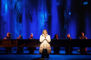 Despite its having won two Tony Awards and been nominated for fifteen, I actually had no real thoughts about Jagged Little Pill other than the vague feeling that, yes, I'm interested in checking it out. With its national tour now ensconced at the Nederlander Theatre, I got my chance. It blew me away. With a solid cast and mind-bogglingly brilliant choreography, this musical, based on Alanis Morisette's epochal 1995 album of the same name and a Tony-winning book by Diablo Cody, is scarily intense at times–I'll discuss that later–and utterly honest about both the struggles it depicts and the depth of the emotions its teen and adult characters reveal or hold in. It is a musical that is powerful, raw and real. It has its humorous and sweet moments, too, and contemplative ones, but the overall energy of the show is angry and kinetic, as encapsulated by the often extreme, percussive, and frantic movements of the ensemble, choreographed by Sidi Larbi Cherkaoui. Cody's book focuses on the Healy family, in many ways a typical upwardly mobile household in suburban Connecticut with typical individual and collective issues. The marriage of mother Mary Jane (the incredible Heidi Blickenstaff) and father Steve (Chris Hoch) is foundering. Since a car accident the previous winter, she has become secretly addicted to oxycodone and has pulled away from her husband and children both physically and emotionally. The parents have no sex life, which Steve attributes to MJ's increasing distance–he is clueless about the opioids–and she believes stems from all of the porn he watches. An opening scene tells us everything we need to know to understand this family's dynamic. It shows MJ writing the family's annual Christmas letter, bragging about the year (and especially son Nick's early admission to Harvard) while each member of the family–including her–shows clearly by their reactions that this family is anything but perfect. Steve spends more and more time at the office, MJ spends more and more time in a daze, adopted daughter Frankie–pointedly a Black teen in this lily-white world–pulls further and further away, and even "perfect" son Nick, who is the only one to whom MJ shows any affection, no longer seems sure of his path in life. In short, despite what it says in their Christmas letter, this family is a total mess. The plot moves forward in two separate plotlines that eventually overlap. MJ struggles with her marriage and sinks more and more into her addiction while Frankie (played to perfection by the stunning Lauren Chanel) searches for identity as a socially conscious Black bisexual teenager. At first in a relationship with her lesbian best friend Jo (Jade McLeod–her vitriolic and painful rendition of "You Oughta Know" is one of the show's high points), who is perhaps the most wholly sympathetic character, Frankie finds surprising succor in a new classmate named Phoenix (Rishi Golani), a somewhat underwritten boy character who defends her in creative writing class when everyone gets on her case about her misuse of the word "ironic." (This is sort of an in-joke: Morisette was taken to task online over lyrics that said things were ironic when they were actually only bad or unlucky.) The siblings and Phoenix, whom Frankie believes she "loves," end up attending a high school party at the home of a jock, which ends up being the story's turning point, as a classmate (Bella, played by Allison Sheppard) later alleges that the host raped her while she was drunkenly passed out. Most of the teens' problems from that point stem from the rape allegation, which Frankie believes, Nick wants to ignore, and MJ insists he stay away from lest he jeopardize his reputation and perhaps even his college acceptance. MJ's problems, already extreme, are exacerbated by the rape story because it is identical to something that happened to her in college. Throughout the show, Cherkaoui and director Diane Paulus drive things along through an extraordinary use of movement: ensemble members seem always to be doing things with scenery, and in this whirlpool of motion nothing stays in one place for very long. Several scenes, including one at a church and one in a classroom, use their highly kinetic blocking to show characters on the edge. A quieter scene on a swing set suggests the romance building between Frankie and Phoenix. Another scene, involving MJ's reaction to discovering that she no longer has an active prescription for oxy, moves forward and then backward as she senses the loss of control. A crowd scene protesting sexual assault (this scene is another highlight) is a jumble of movement and signs. And all the while the score by Morisette (with Glen Ballard and Michael Farrell, and Guy Sigsworth providing additional music) continues to pound and gather steam, Justin Townsend's lights signal the fluctuating emotions, and Lucy Mackinnon's projections help define where we are. It isn't only the rowdy rock tracks with their "wall of sound" quality and the powerful, ballistic movements that provide the pain here. One of the most harrowing scenes of all is essentially a pas de deux danced to the mostly quieter "Uninvited." Here, ensemble member Jena VanElslander becomes MJ's doppelganger, brutally playing out the latter's breakdown due to the fentanyl-laced oxy she had overdosed on. VanElslander, a remarkably expressive dancer, performs a similar scene helping us to see Bella's rape. About the only complaint I have about this production is about the somewhat mushy sound whenever the ensemble is singing unaccompanied by the leads. It is often very difficult to understand them or even make out words, unfortunate in a play that depends on its ensemble as much as this one does. Despite this, though, I can recommend Jagged Little Pill without reservation to theatergoers of high school age and up. (It will probably be too heavy for younger children.) Though this is categorized as a "jukebox" musical, the unified nature of the 