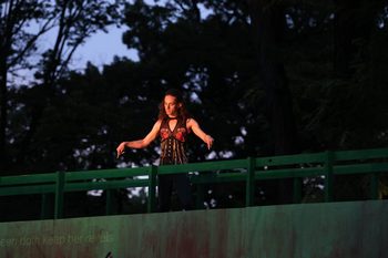 He couldn't have chosen a better play with which to do it. Midsummer is crazy, chaotic, a bit dark, very silly at times, supernatural, and a ton of fun. No matter how many times and in how many forms I've seen it–and I've directed a production I set on Navy Pier–its combination of fairy mischief, young love, and screwball comedy, unparalleled in the Bard's entire oeuvre, never ceases to be thoroughly engaging and entertaining. Staged outside in a meadow surrounded by trees, Oak Park's version makes us feel as if we've been dropped in the middle of the forest along with the lovers and fairies. And the feeling is joyous. Anderson's decision to cast two same-sex couples as the lovers is brilliant, as it simultaneously calls attention to the contemporary problems faced by the community and, in a more subtle way, utterly subverts them. At the start, Egeus (also transgendered and played as a woman by Wil Wilhelm) demands that his daughter Hermia (Rachel Jones) marry the man she has chosen, Demetrius (Julio Cesar Gutierrez), instead of the woman she loves, Lysander (Taylor Dalton). Otherwise, she must face the punishment Athenian law provides for such disobedience: her choice between death and a lifetime in a convent. Her mother's refusal to accept Hermia's choice becomes emblematic of the kind of antipathy and discrimination many queer people face every day. There is no dialogue that shows gay-bashing, of course, but we see what we see: a mother who would rather her daughter be put to death than to see her marry another woman, no matter how worthy that woman is. Hermia and Lysander choose to put themselves outside of Athenian law by going into the woods beyond the city–hiding who they are as LGBT+ people had to do for centuries. Meanwhile, Helena (Lucas Prizant, the only one of the four lovers to consciously and obviously adopt any characteristics of the original gender of the person he is playing) is miserable because the man he loves (Demetrius, of course) does not love him back, preferring the more traditional match with Hermia favored by her mother. He scorns Helena's clear feelings (and, yes, this makes some of his lines come out homophobic), constantly berating him and at one point physically pushing him away. One result of all of this coupling and non-coupling is that the nature of gender itself seemingly becomes unimportant. We see same-sex pairings but hear names and references to the het couples that exist in the script, and eventually everything blends together to the point where nothing about any of it matters. As it should be. The fairies, led by King Oberon (Aaron Latterell, who also plays Duke Theseus of Athens) and Queen Titania (Sonia Goldberg, who is also Theseus's fiancée Hippolyta), live in the woods where the lovers take refuge (followed closely by Demetrius, wanting to stop them, and Helena, because of course he follows his would-be love). In both mortal and fairy personas, Latterell–blessed with a wonderful kingly voice–and Goldberg are perfect. And the fact that the fairy royals are fighting among themselves provides a perfect opportunity for Titania to have some nasty fun, assisted by her aide-de-camp, the impish Puck (Wilhelm, is a role they were born to play). A few drops of instant-love juice later, Lysander and Demetrius are both unwaveringly smitten with Helena, who believes them to be making fun of him, and the fun is on. Also in the woods is a group of workmen ("mechanicals") getting ready to put on a play (also about lovers, but more tragic even though their incompetence brings much mirth into it) to honor the Duke on his wedding day. Chief among these is Bottom (played by an absolutely brilliant Molly Brennan), who is the kind of guy who knows nothing but thinks himself capable of just about anything. He is assigned the main role, Pyramus, but seems to think he should play everything himself. Thisbe, his doomed love interest, is played by Flute (Haven Janeil Crawley), who at first does not wish to play the girl but eventually delivers arguably the most lovely speech of the play. As they rehearse, Puck sees the boorish Bottom and chastises him by giving him an ass's head, and his friends all run from the image of him transformed into a monster. When Puck tells Titania of this fun, she decides to bring an end to her argument with Oberon by playing a joke on him. Another drop of instant-love juice, and the king of fairies falls hopelessly in love with an ass (Bottom). All of this other-worldly mayhem takes the spotlight away from the lovers, which is pretty much the point. Thanks to the choices Anderson has made, the whole notion of homophobia vanishes into the night as order is restored and the dreamlike memories of Puck's now-reversed mischief are gone–though Demetrius does now accept Helena as his lover. The pure joy exuded by this company makes their Midsummer a must-see. There are beautiful (and often funny) dance breaks (choreographed by Christian Bufford, original music by Daniel Ocanto). There is also a wonderful set by Evan Frank that is able to visually distinguish the forest from the court. This production is almost as magical as its fairy characters. A couple of (minor) concerns: the stage sits pretty low and characters are often on the "ground," which causes sightline problems. Try to sit as close to the front center as you can. This will also aid you in the first act when the evening cicadas pretty much drown out the dialogue along the sides. I was on the side, and obviously I still enjoyed the play, but I would have enjoyed it more without these problems. A Midsummer Night's Dream runs through August 29, 2023, at Oak Park Festival Theatre, 167 Forest Ave, Oak Park IL. For tickets and information, please visit oakparkfestival.com. |