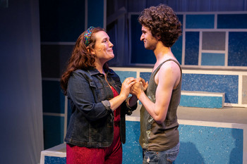 First, at two hours and ten minutes, it is at least half an hour too long. (Seriously, this show would be much improved if it were cut to a 90-minute one-act. Though it does have a "natural" point at which to break–at least one of whom is a major star-in-waiting–Christmas vacation–at least one of whom is a major star-in-waiting–there is no reason for it to be two acts long except to sell refreshments at intermission.) Second, the central premise of the show's first hour involves students in a diversity-themed dorm called, bluntly, Diversity House, who simply refuse to accept that a new freshman is gay because he does not adhere to their internalized picture of what "gay" is. (Their excuse is that he is not as "awesome" as a gay guy should be.) It makes for an interesting first act as the young man (Logan, played by Ben Ballmer) tries on various stereotypical gay "types" in order to find where he fits, failing miserably at all of them and ending up with his dormmates shunning him and calling him "straight" as an insult. Until this issue was resolved (which, thankfully, it was), it tainted my entire experience of the first act. It's not that Logan is a great guy–in fact, he's a bit of a jerk–but the notion that one cannot acquire one's "gay card" except by adhering to archetypes that, though they have basis in reality, are not the only ways to be gay–or anything else, for that matter. Every time the plot came back around to his "trying on" personas that were foreign to him in order to earn that mythical "card," I cringed. Ballmer, all flailing arms and legs, does his best to mimic the ideal for each gay tribe–"twink," "gaymer," etc.–but fails, often for trying too hard but sometimes for simply bizarre reasons. One character comments that he doesn't do "twink" well because he is too thin, even though slimness is part of what the twink stereotype is all about. (I did like his failing as a "gaymer" after touting SIMS, though.) Anyway, at a college Pride Night just before the Christmas break, Logan finally finds acceptance, cementing his gay card by publicly kissing the gay porn star who is acting as a kind of grand marshall. It's a winning gambit, but in doing so he alienates the two people who are closest to him: his longtime best friend Melanie (Sophie Murk), who has always loved him; and Graham (Freddy Mauricio), the young man who has slowly been falling in love with him all semester. Logan becomes a master class in gaining the whole world but losing his own soul, and the second act follows through on how he manages to set things "straight" (sorry). Because this is a musical comedy, of course he succeeds. It's all far too easy, if you ask me, and relies too much on coincidence, but OK. He may not deserve his happily-ever-after but, again, musical comedy rules apply. Españo's direction–I especially love the way he stages the three-part team called the "Blog Trio"–and Britta Schicht's fun choreography, along with some very creative costuming by Shawn Quinlan, keep everything alive and eminently watchable, and the ensemble is rife with enjoyable characters. Ballmer, the ostensible lead, can be charming, but Korell and Keebler keep forcing him to be a contemptible twit, and it's hard to keep rooting for someone like that. (For the record, Ballmer never seems totally at ease with Logan's actions, which I'm sure is an instruction from Españo that he takes to heart, keeping the character just this side of the darkness and, therefore, redeemable.) Other significant characters include Justin (Nathaniel Thomas), a heterosexual high school jock seeking to reinvent himself without losing his caché; Danielle (Rachel Carreras), the hypersexual dorm RA; Cory (Joseph Alvey), a bi dormmate who would like to make it with second-act Logan (although, to be fair, he isn't very discriminating) after mostly dissing first-act Logan; July (Maya Radjenovich) an effervescent girl who explains her odd name by saying that her parents named her April and "Do I look like an April?"; and the aforementioned Blog Trio (Michael Idalski, Elijah Warfield, and Adelina Marinello), who appear in light-up goggles and satirize the help blogs found online. Which brings me back to Graham and Melanie. We learn a lot about Graham here. He's Logan's opposite, a young man who calmly studies people, doesn't care about fitting in, and has many friends because he isn't trying to get them. It's inevitable that he sees something in Logan that attracts him (as opposites do). He's holding back, of course, every bit as much an issue as Logan's uber-anxious need to twist and contort himself into stereotypes. Because of that, though, he can be hurt badly if he allows himself to feel. That's Melanie's problem, too. Instead of sneakily posting on the Gay Card Blog like Graham, she is focused entirely on her education (she even sings a song, "Extraneous," about the intersection between feelings and, well, math). What she is holding inside, though, is the fact that she has been in love with Logan (hopelessly, she now knows) forever. It hurts her to see him transform from the boy she knew into ... whatever he is turning into. She has several songs about her feelings, and though the whole cast are strong singers, Murk towers above them. On opening night she received several long ovations–the longest one probably in homage to how she held it together when her mic went out, raising her volume and hoping that Robert Ollis's five-piece band would adjust on the fly, which it did–and all of them were deserved. Truthfully, it is Melanie's story here as much, if not more than, Logan's, and all of her joy and pain are earned by Murk. In the end, as the characters sing, we are all "figuring it out as we go." What Korell and Keebler need to figure out is how to take this show to the next level. I hope that, in doing so, they don't cut the several lovely character ballads. The more high-energy songs are strong, but the softer (often so