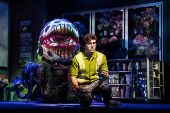 OK, maybe no one actually ever said that, but it makes no real difference anyway: a solid production of the world's only such musical is virtually guaranteed to be entertaining, and Paramount Theatre's is indeed outstanding. From a killer (sorry) set to virtuoso performances to high camp to the world-conquering, serial-killing shrub itself, this is an utterly perfect Little Shop of Horrors. After a "voice not unlike God" (the late Hollis Resnik) opens the proceedings, we are immersed into a Jeffrey D. Kmiec-designed set in the bleakness of New York City's Skid Row, a dark place where tall buildings block out the sun and pornographic entertainment is plentiful and cheap ("Peep Shows 25 Cents"). Yet, somehow, in all of this deplorable, impoverished ugliness, there is a little flower shop that, though constantly struggling, has found a way to remain open, though its proprietor, Mr. Mushnik (an entertaining Gene Weygandt) is just about ready to give it up for dead. The narrative singing trio of Chiffon, Crystal, and Ronnette (Lydia Burke, Marta Bady, and Tickwanya Jones) are entrancing with their movements choreographed by Michael George and Mariah Morris and costumes by Yvonne Miranda. When they aren't handling their singing duties, we often see them just hanging around the slum, mixing with winos and other denizens of this forlorn place. But they are marvelous while singing, whether alone, as in the title song, or as part of the ensemble, as in "The Meek Shall Inherit." As the nebbishy Seymour, who spends his days experimenting with strange hybrid plants and pining for fellow Skid Row resident Audrey (Teressa LaGamba), who also works in the flower shop, Jack Ball could have been designed directly from the original screenplay. This Seymour is a skinny, put-upon man who is quite obviously, as the trio sings, "a meek little guy." In Mushnik's perpetually customerless shop, Seymour finds himself wasting time sweeping along with the metronomic ticking of the clock and waiting for quitting time at six. He's wiry, a bit clumsy, and totally sincere–and he wishes Audrey would notice him instead of the "semi-sadist" dentist (Russell Murnagh) she is seeing. It takes his discovery of a reality-warping alien space plant to finally bring them together. LaGamba's amazing singing voice (she received several in-song ovations on opening night) helps differentiate her Audrey from the stereotype created by the popular film and Broadway actress Ellen Greene. This Audrey is a victim of poverty and her own insecurity, but she is not weak. In fact, you might start to wonder why she allows Murnagh's gas-guzzling dentist to abuse her as he does. When she allows herself some self-respect, LaGamba's Audrey becomes a fully realized character rather than a simple caricature of helpless femininity. (Her rendition of "Somewhere That's Green" is utterly heartbreaking.) As Orin Scrivello, DDS–he demands that Audrey use that full name–Murnagh has lots of fun, but rarely seems the domineering sadist we saw in Steve Martin's film portrayal. He seems like the kind of guy who'd love to be someone's best buddy if only he knew how, much more than inflicting pain on both Audrey and his patients. It's a different take on the character and an interesting one, though it seems at odds with "feeding him to a hungry plant." Speaking of that plant, this Audrey II was designed and created by Skylight Music Theatre and is puppeteered by Adam Fane. The plant's huge, elegant, devious voice is that of Je'Shaun Jackson. Both of them get well-deserved curtain calls along with the more visible cast. Unfortunately, there is no way for the excellent five-piece band conducted by Kori Danielson to do the same, though their dynamic sound drives the whole show. (Speaking of sound, Adam Rosenthal's sound design includes lots of room for fun moments from electronic music designer Ethan Deppe.) This may not be a production that redefines Little Shop, but it certainly is one that takes great advantage of everything that Howard Ashman and Alan Menken provided in the musical adaptation. What this translates to is hilarious, campy fun, and what more could a theatregoer want? Little Shop of Horrors runs through October 15, 2023, at Paramount Theatre, 23 East Galena Boulevard, Aurora IL. For tickets and information, please visit paramountaurora.com. |