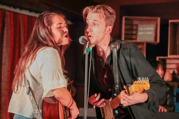 On some level, turning Chekhov's play into a musical makes sense as an attempt to avoid these problems. Chekhov was a master of subtext, subtlety, and the unspoken. His plays get to the root of human behavior thanks to his unparalleled ability to capture nuance and his penchant for dark, restrained comedy. Approaching Chekhov through the musical, a form that thrives on basically none of these qualities, forces the writer to find creative solutions to the thorny problems of adaptation. It sets the dramatist an exciting but daunting challenge. How do you effectively create Chekhovian drama in a form that glories in over-the-top emotion and externalizes every thought and feeling? Unfortunately, in execution, Seagulls doesn't quite meet the challenge. Hyland focuses the story on just four characters, centering the narrative on the artistic and romantic travails of the ambitious young musician Con, her version of Treplev. He's the leader of an indie rock band called Seagulls (no "The" in front) along with his girlfriend Nina and friends Masha and Simon. Con's mother achieved fame as a pop star named Dina D., but he is determined to find artistic success on his own merits and to create music that truly affects people. Unfortunately, his dreams are complicated when his mother shows up with her new boyfriend, indie rock icon Ben Trigorin, who takes an interest in Nina that the young woman mistakes for a purely professional fascination. The script suffers from two major problems, the first of which is a function of adaptation. In focusing the story on Con and his bandmates, Hyland cuts both Arkadina and Trigorin from her script. Although the other characters often refer to Dina D., we never see her onstage. This is a curious decision since much of the dramatic tension of Chekhov's play comes from Treplev's conflicts with his mother and the type of artistic pretensions she represents. Even more confoundingly, Arkadina is arguably Chekhov's single most interesting character. Her absence is noticeable, and I can't help but imagine that seeing her rendered as a pop star whose fame is fading would offer a plethora of creative opportunities. This absence speaks to the script's major dramaturgical problem, which is that the play's central idea never quite coheres because it's not totally clear whose story we're following. Since it only has four characters, the play attempts to give them all equal weight. But its fleet runtime of 90 minutes means it offers little more than a surface-level treatment of any of the issues raised here. Variously, Seagulls deals with the tension between art and commerce, the power of art to affect human lives, men abusing their power, the music industry's misogyny and its treatment of women as a commodity, learning how to accept a romantic partner warts-n-all (and the difference between settling down versus growing up), and the ethics of using your material privilege and connections to get ahead in life. Any one of these subjects could easily sustain a full-length play. The result here is like a recipe with too many ingredients: Even if they're all delicious, they don't blend into a cohesive whole. Throughout, the production is hampered by a lack of unity. For example, all of the songs are diegetic except for "Nina's Song," the penultimate number in which she tells Con about Trigorin's callousness toward her. It's meant to be a devastating confessional, but the effect is blunted because the show feels like a traditional musical instead of a concert for the first time. Likewise, early in the play, Nina refers to an up-and-coming musician who's already been "on the cover of Pitchfork," but it's not at all clear what she means since Pitchfork is and always has been a website. This may seem like nit-picking, but these small moments concatenate to give the production a sense of artificiality that undermines its potential power. And yet. Despite its flaws, Seagulls crackles with an undeniable energy, thanks to its game cast. All four deliver winning, lively performances that show off impressive vocal abilities and tremendous range. In the song "Muse," for instance, Aurora Penepacker channels the energy of an indie rock chanteuse a la Caitlin Rose or Pearl Charles as she excoriates Con for treating her like a prop for his own actualization. Reacting to this perceived betrayal as he accompanies her soaring vocal, Ryan Kirby finds some delightful physical comedy with his guitar. Perhaps the highlight of the evening is the act one closer "Disaster Song," an outre slice of No Wave-inspired nonsense in which the band members switch instruments and Nina howls about climate change alongside some aleatory lyrics and nightmare music. (It makes sense in context.) So, although Seagulls is unlikely to enter the annals of theatre history alongside its famous forbear, there are plenty of thrills to be found in seeing four young artists going for broke with their backs against the wall. After all, that's the kind of thing people write plays about. Seagulls runs through November 19, 2023, at Pleasant Home, 217 Home Avenue, Oak Park, IL. For tickets and information, please visit oakparkfestival.com. |