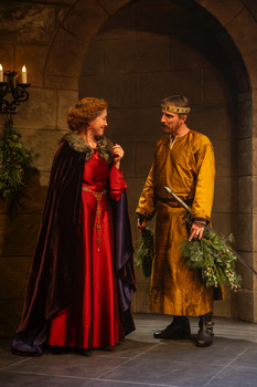 The design of the production is, on the surface, nothing special, which is to say that it is subtle, skillful, and wisely crafted to keep the focus on the actors. With great simplicity, Linda Buchanan's scenic design captures all the cavernous places one might be lonely in Henry's castle at Chinon. With just a few set pieces tracked in from the wings and a handful of furniture pieces transforming the downstage area into something more intimate, Buchanan captures the grand scale on which the Plantagenets live and entertain without sacrificing pacing to lengthy scene changes. Jared Gooding's lighting design makes excellent use of the vast expanses of gray stone, effecting an impressive transformation into the dungeon for the play's climax. Christine Pascual's costumes succeed in a similar vein. She establishes a deep burgundy as Eleanor's color early on, while Alais is associated with lilac. Later, however, when the two women share an intimate scene in the bedroom that belongs to the two of them equally, Alais wears a simple white shift and Eleanor a lilac robe. The color scheme not only transports the two back to Alais's childhood and the possibility for tenderness between them, it visually communicates the vicious cycle they're locked in. The sound design and composition by Christopher Kriz are, perhaps, slightly less consistent than the other design aspects. The pre-show and intermission music is certainly spot on. Its driving though slightly irregular rhythms have a destabilizing effect that serves a story with such a high betrayals-per-minute rate. However, the music that is occasionally woven into the scenes themselves does not seem to be guided by intentions that are always clear to the audience. John Hoogenakker and Rebecca Spence are nothing short of outstanding as Henry and Eleanor. Each has a distinct and precise mastery of Goldman's language. Hoogenakker's rough and weary approach meets Spence's cool and glittering style in an appropriately turbulent fashion. Moreover, there is no simple dwelling on the surface for either actor. The hatred, regret, viciousness, and deep, dark love between them constantly roils beneath the surface of the barbs they trade with exquisite timing. Spence and Netta Walker (Alais) work together so well that they very nearly steal the entire play for its outnumbered women. Walker's self-possession and the intelligence she projects invite the audience to embrace the complexity of how she and Eleanor feel about one another, and she more than capably handles the character's passion, ambition, and frustration with her status as the only pawn among the kings, queens, knights and bishops. Shane Kenyon (Richard), Kenneth La'Ron Hamilton (John), and Brandon Miller (Geoffrey) develop a dynamic among the would-be kings that elevates each of the three roles. As much of a pleasure as it is to witness Goldman's dialogue executed beautifully by individuals, there is a certain danger that the sons' scenes devolve into stagey monologues. Here, however, the actors' distinct physicality and deep awareness of one another communicates the rich familial and political subtext that is constantly on the characters' minds. As Philip, Anthony Baldasare occasionally leans a bit too heavily into the snap of the dialogue, seemingly emphasizing the lightning pace of the character's exchanges and not always finding the nuance that his castmates manage to excavate more consistently. But these moments amount to minor blips, and Baldasare succeeds in emotional builds in the performance overall. The Lion in Winter runs through December 3, 2023, at Court Theatre, 5535 S. Ellis Avenue, Chicago IL. For tickets and information, please visit www.CourtTheatre.org or call 773-753-4472. |