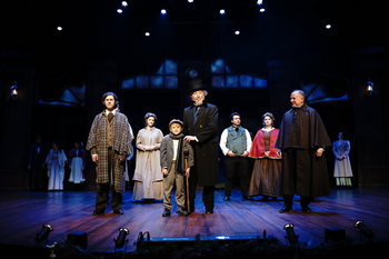 I was very pleasantly surprised. Staged in a comfortable 329-seat auditorium, this A Christmas Carol might not offer the huge sets and extravagant costumes (or the flying spirits) you'll see downtown, but that is to be expected. What it offers instead is the chance to see that Dickens' uplifting story doesn't need all that glitz and glamor to have an impact on the heart. Scrooge is played by Steve Connell, who has done so many times in the past. Opening night did not see him at his best, as he was clearly struggling with a bad cold that undoubtedly limited his range a bit, but even so his version of the venerable character is very strong. Done well, Scrooge should be a mean, miserly old man who carries buried within him enough painful and difficult memories to make his remarkable transition believable–once he is forced by the ghosts to revisit them. Connell's Scrooge doesn't seem to take any pleasure from his miserliness; all joy has been withered within him by the years he has been alone. Even with his energy depleted, though, Connell was able on opening night to show the rebirth of that joy as the night's visitations force Scrooge to confront the consequences of the life he has chosen. The overall structure of Jacqueline Goldfinger's solid adaptation, which is directed by Brendan Ragan, is not dissimilar to that of the Goodman: in a celebration of the glorious descriptive prose that Dickens created, Goldfinger employs many narrators, Londoners out and about on Christmas Eve, to give voice to the author's clever (and often humorous) depictions. (Her treatment of the "Marley was dead as a doornail" moment is wonderful and foreshadows the fun she has throughout the play.) For his part, Ragan and his impressive cast populate even the most forlorn parts of the city with vibrant, real characters. Even the thief (played by Maura Crowley) who rips down Scrooge's bed curtains is individually memorable. And the more well-known characters are portrayed beautifully, sensitively and imaginatively. I don't know if it was Goldfinger or Ragan who came up with the idea of having Tiny Tim himself (Spencer Schillinger) deliver the "who did not die" line about his character, but it was utterly epic. Bob Cratchit (Andrew Bosworth) handles his life and poverty with the kind of sweetness and open-heartedness that makes him such a perfect contrast to his horrible boss. The 85-minute running time of this production (which includes two major dance scenes and multiple cast-sung Christmas carols) does not allow a lot of time for character-building nuance, but Bosworth is nonetheless a standout. In fact, there isn't a weak performance in the whole show. Others who require mention include Peter BriseƱo Gertas (aided by sound designer Daniel Etti-Williams) playing a desperate Marley, trying to break through his ex-partner's stubborn shell. Gabriel Fries' Fred is another character in contrast to the dour Scrooge: his ebullient Christmas spirit is unextinguishable. All three ghosts (Zoya Martin's Past, Josh Frink's Present, and the huge, red-eyed puppet Future designed by Patrick Maguire and played by Michael J. Santos) are excellently portrayed. Choreographer Kaity Paschetto's work is lovely here as well. The Fezziwig dance party and Fred's family gathering are both fun and thoroughly enjoyable, and the added character called Winter, danced balletically throughout the show by Emma Grace Bailey, is a welcome embodiment of the season. Music director Ken McMullen's choices for her perfectly conjure the emotions of her dance. Scrooge's story is the very embodiment of the spirit of the season, so it isn't surprising to find multiple versions of it playing on Chicago's stages. What joy to discover that this one, out in the northwest suburbs, hits the (door)nail on the head and proves that Dickens' tale doesn't require a huge budget to succeed brilliantly. A Christmas Carol runs through Sunday, December 24, 2023, at Metropolis Performing Arts Center, 111 W. Campbell Street, Arlington Heights IL. For tickets and information, please visit MetropolisArts.com |
