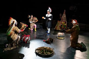 It's the craziest, most up-to-date comedy you'll see this year, as everyone of us seems to face the threat of some personal, Stalinesque purge over the tiniest infractions of identity politics. And it's impossible to sidestep all the modern political landmines as a quartet of theatre people devise a new play for school kids about the pilgrims and That minefield comes wrapped up in lots of hilariously genuine empathy, seemingly demanded by the general concept of diversity, equity and inclusion. DEI is not specifically the villain, but it turns us into fools, as though the secret police were listening around every corner. There's also a wildcard outsider on stage to relieve the burden of infinite respect, in the form of a beautiful actress from Los Angeles. She first presents herself as Native American named Alicia, played to winsome perfection by Paloma Nozicka. But her story presents just one of the many absurd complications. The phrase "erased presence" flies by a few times in very delicate and oblique reference to the mass murder of American Indian tribes, in the process of colonization. But when it comes to great theatre, subtle euphemisms are no match for wild symbolic violence–as we see in a jaw-dropping, bloody game of Thanksgiving Day football, played on stage with a couple of severed (rubber) heads. It's insane, as history does battle with the present. At the center of it all is a bright young woman named Logan (Audrey Francis), an idealistic director who's cobbled together a bunch of financial grants to put on a new socially conscious holiday play for children which as yet remains unwritten, but which she has promised will run 45 minutes in its final form. That's why they gave her the money. Gradually, the cruelties of life and a horror of cultural insensitivities put us into a spin. Steppenwolf Co-Artistic Director Audrey Francis is terrific as Logan, brilliantly frozen (at one point) in the face of temptation, and her own identity crisis. The whole legacy of the world of theatre seems to rest on her shoulders as she wobbles atop the jiggling zeitgeist. Nate Santana is a subversive comic delight as Jaxton, and Tim Hopper is smart and a bit heartbreaking as Caden. Mr. Santana plays the street performer, and Mr. Hopper a history teacher. They've landed the other roles in this work-in-progress, which turns into something quite different by the end. And both actors master the comical terror of an entirely new kind of non-gendered, non-Eurocentric Big Brother. All four of them ratchet-up the absurdity of our idealism, even when it's irreconcilable with our actual history, on a second-by-second basis: whether as pilgrims, or fools, or blood-soaked holiday football players. The Thanksgiving Play runs through June 2, 2024, at Steppenwolf Ensemble Theater, 1646 North Halsted Street, Chicago IL. For tickets and more information, please visit www.steppenwolf.org. Cast: Production Staff: Artistic Directors: Glenn Davis*, Audrey Francis* Executive Director: E. Brook Flanagan * Denotes Steppenwolf Theater Ensemble Member ** Denotes Member, Actors' Equity Association *** Denotes Member, United Scenic Artists Local 829 of IATSE **** Denotes Member, Stage Directors and Choreographers Society |
