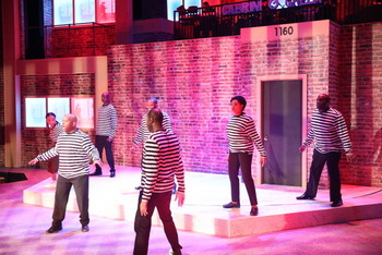 Taylor lightly fictionalizes herself by featuring two "Janets," one an adult who serves as the show's narrator and one the child/young adult whose relationship with her younger brother was deeply interwoven with the music and movies of The King. Most of the brief dramatic scenes center on the family's experiences living in Chicago's infamous Cabrini-Green housing project, though these scenes are interspersed with some meta-commentary by the ensemble and/or adult Janet on Elvis's relationship to Black culture and Taylor's perspective on her own relationship to the man and the music. What there is of the family story is a bit thin at times (though no thinner than other entries in this genre), but the performers bring enough warmth and humor to it that more of this material would have been welcome. Similarly, when the ensemble members (with a special appearance by Little Richard) run the audience through the work of the outstanding Black singers Elvis was inspired by (or "inspired," as Richard can't resist noting), it certainly feels as though there is room for more of this interesting exploration. The set design by Denise Karczewski, who also designed the lighting, features a relatively simple but effective rendering of the brick face of Cabrini-Green, flanked by rows of windows that serve as screens hosting both projections (design by DJ Douglass) and backdrops for squares of light that give the set a club vibe, as needed. The center wall of the set also revolves to reveal the family's spare but neat kitchen. Douglass's projections are primarily limited to images of Elvis and other singers, as well as photos featuring the families of both Taylor and Elvis. The most effective and impressive use of this part of the set comes during "Jailhouse Rock," when most of the cast don black-and-white-striped shirts and perform a riff on the movie's dance numbers (choreography by Christopher Chase Carter) as stills from the movie pop up in various panes. The costumes (Evelyn Danner and Kelly Mosley are credited with wardrobe/assistant costume design) are well done. The "real life" scenes convey the passage of time and the change in the characters' experiences as the fifties give way to the sixties, and more critically, the ensemble's sharp, matching black leather jackets and white double-breasted suits, as well as adult Janet's gowns, keep the visuals grounded in the aesthetics of Black performance of the period. The four-piece "house band" (Robert Reddrick serves as musical director) provides great support for a cast of talented singers, and Reddrick's talent for arrangements and medleys is on clear display. In a few instances, a singer might have needed the melody pitched up slightly to better suit their voice. But other than this and the occasional issue with mic placement, the music is the high point of and strongest recommendation for the show. Rhonda Preston (Adult Janet) and Britt Edwards (Young Janet) are well-paired as the embodiments of the show's point of view at different points on the characters' timeline. Edwards, in particular, is both a believable moody teen and serious young adult, and Preston's wry "reads" on the play's dialogue elevate lines that might read as stale and trite on the page alone. Melanie McCullough is a standout as Lucille/Mom, as she manages to capture the humor of the "Back in the Day Mom/Mom of Color" without ever lapsing into stereotype. McCullough and Jaitee Thomas as Gus/Dad also create an effectively loving, lived-in relationship and spark off one another as they fill different roles for Janet as she matures. Their performances are strong enough that the audience might wish that the scene after Joe's funeral were a bit weightier than it is in the text of the play. Similarly. Dennis Dent is very good as Joe, and I wish the character were more extensively present. The ensemble members, Direoce Junirs, Trequon Tate, Dwight Neal, and Destin Warner, are all excellent, demonstrating strong, versatile voices. The occasional stumbles with regard to lyrics or choreography, paired with their stage presence, contribute to the intimate, homegrown feeling of the show. Elvis Presley Was a Black Man Named Joe runs through April 20, 2025, at Black Ensemble Theater Cultural Center, 4450 N. Clark, Chicago IL. For tickets and information, please visit www.blackensemble.org or call 773-769-4451. |