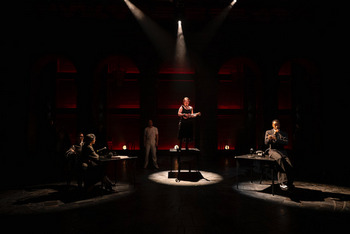 In theory, the play follows the stories of three rough groupings of characters. Marthe Müller has escaped Cologne and the marriage her respectable and economically comfortable parents would like to arrange for her. On her way to Berlin, she crosses paths with Kurt Severing, a journalist whose ability to work and sanity are crumbling along with the economic and political situation in the city. At art school, Marthe meets Anna Lenke, a masculine-presenting fellow student, and when it turns out that she has no particular interest in pursuing the kind of art the school teaches, Marthe oscillates between relationships with the two. She also takes a walk on the wild side of the sex, drugs and jazz the city has to offer under the tutelage of Kurt's former lover, Margarethe. The other two groupings regrettably receive less attention here. Kid Hogan is a Black jazz coronet player from the southern U.S. who falls in love "at first sound" with the singer Pola Mosse. Representing the everyday people who are suffering most acutely under the terms of the Treaty of Versailles are Gudrun Braun, her husband the shell-shocked Otto, and her young daughter Silvia, as well as the Communist activist Otto Schmidt and the twelve-year-old, self-described Jew, Communist (at least at the paperboy level), and Houdini fan, David Schwartz. If the plot of the focal group of characters sounds eerily like an amalgam of the stage and film versions of Cabaret, this certainly seems intentional. Indeed, Court is participating in a screening of the film during the show's run. If the B-team characters seem like a conscious update of Isherwood (and Kander and Ebb), complete with nods to Michael Chabon's The Amazing Adventures of Kavalier and Clay, well, it seems likely that neither Lutes nor Maher would shy away from acknowledging this. And yet, these stories are far from landing the human, emotional beats their inspirations do. Marthe, for all her love of jazz and well-founded resistance to the roles prescribed for her as a privileged woman, is largely unsympathetic. She drifts from Kurt to Anna and back again, vacillating between being oblivious to the fact that she is a "kept woman" to angry about it to ultimately leaving Berlin on principle (but also because her dabbling in social unacceptability may have finally put her in real danger). And perhaps most importantly, Marthe's narcissistic reaction to Anna's immobilizing depression after her assigned sex at birth is brutally revealed in a raid on a club the two are frequenting makes it difficult to retain perspective on the fact that Marthe herself is engaged in a gender struggle that has much lower stakes in this particular historical moment. In a similar vein, it is challenging to maintain a connection with Kurt as, on the one hand, he is incandescently frustrated with the privileged creatives of Berlin as they dance and screw their way through the conflagration, but on the other, he is naive enough to be casually certain that his editor's case for treason will be dismissed. Add into this that he is not so much hostile to the exhortations of his acquaintance (if not friend) Otto Schmidt to join with the workers (read: Communists) as he simply is too wrapped up in his own petty, bourgeois concerns to be bothered. There are interesting veins to be tapped in all these stories. There's genuine humanity and complex, conflicting values and positions, but whether the disappointment is rooted in the source material or the adaptation, this never quite gets there. All of this is not to say that there are not artistic triumphs here, or that the show is not worth seeing. John Culbert's scenic design is stark and gorgeous, with its arcade of pitch-black arches, and the stage's main footprint, which suggests a sewer grate, but also a storm swirling beneath the characters' feet. Add to this Keith Parham's lighting, which floods the senses with red, horizontal bars to mimic panels from the graphic novel and sears the retinas with blinding white light, demanding that the audience confront both the past and the present. Jacqueline Firkins' costuming is wonderful for Anna, for Margarethe and Pola, and for Kid, as well as for Gudrun, but the costuming for both Marthe and Kurt is static, and when ensemble members need to shift into other personas (as they need to do with great frequency), there isn't always visual support that the audience can easily follow. Mark Messing's sound design is oppressive, alienating, and inviting in exactly the right proportions. His compositions, when the production features them, are overwhelming and effectively oppressive. But here again, the adaption is disjointed in ways that don't always seem intentional. The variations on Brahms' lullaby are exquisite and touching; Pola's songs (and the songs of other characters played by the same actor, whether or not she is supposed to be Pola in those moments) are often rousing and effective. But then, very late in the second act, there is an isolated musical theatre number about queerness and freedom that is problematically detached from the rest of the show. For all the frustrations that emerge from the text, though, the production is a well-executed feat. The near constant motion speaks to Newell's expert direction and the rapport that the cast achieves under it. The sore thumb musical number does not negate the soundscape the cast creates on the stage, and there many things here that are a pleasure to experience. As Marthe and Kurt, Raven Whitley and Tim Decker embrace the undisguised flaws of their characters. As unlikeable and unsympathetic as the character of Marthe is, Whitley is unafraid of her fatal flaws, and manages to find moments of connection with the audience. Although Severing is a series of contradictions, Tim Decker inhabits and gives life to a man who is unnervingly prescient in some ways and privileged to the point of being oblivious in others. Mo Shipley is exceptional as Anna. Many an actor has ha