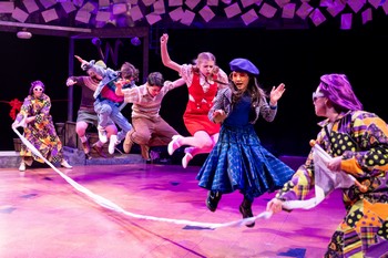 Complete with a wildly talented cast of young actors in the iconic roles of golden ticket holders, the production is a perfectly bite-sized one hour show. The classic tale is infused with nuggets of current pop culture, including a revised Violet Beauregarde turned social media influencer, and a "skibidi" drop, which garners plenty of laughter. Mak successfully interjects these modern-day touches within the timeless framework of Willy Wonka's world. In fact, there's an impressive spectrum of distinct eras woven into this imaginative tapestry. The Beauregardes are firmly planted in the present, while Mike Teavee and his mother are unapologetically rooted in the early 1990s. (Kudos to costume designer Theresa Ham and wig/hair designer Miguel Armstrong for nailing the nostalgic look of the Teavees!) Maintaining a familiar mid-20th century thread are the Gloops, the Salts, and the Buckets. The time-warped families coexist effortlessly. Paving the way to the doors of the mysterious candy factory is Wonka. Brilliantly played by George Keating–his Chicago resumé runs the gamut of professional institutions (Goodman, Chicago Shakespeare, and Drury Lane, just to highlight a few)–whose animated vocal cadence is reminiscent of the vintage voice actors behind archetypal characters like Winnie the Pooh and Tigger. He brings a warmth and approachability to Wonka that works beautifully in the intimate setting of Marriott's theatre-in-the-round. Had Keating leaned into some of the aggressive choices made by Gene Wilder in the beloved film, I fear it would not have translated well in this time and space. His take on Wonka is sweet, kind, and humbly hilarious. Kai Edgar plays co-lead character Charlie Bucket, a role he played in the national tour. Edgar is a powerhouse talent, whose rich and mature vocals soar through every song. He embodies every ounce of tenderness and forbearance audiences expect of Charlie. His scenes with Grandpa Joe (Rick Hall) hold some of the show's most heartwarming moments. The pair's onstage relationship is absolutely charming. The Marriott productions are consistently brimming with creativity, as the production staff is repeatedly tasked with creating visuals with a 360-degree sightline. The aisles, which cut straight through quadrants of the audience, are utilized well here. With the help of the patchwork-clad Oompa Loompas and some clever fabric choreography, we watch August Gloop flail through the Chocolate River and ultimately get swept away. The children are also enchanted by the abundance of bubbles floating above their heads in one of Wonka's experimental candy rooms. However, props designer Wynn Lee could have explored more options for the introductory journey into Wonka's factory. The construction of oversized candy via large onstage chests, choreographed into the song "Pure Imagination," is clunky and distracting. It doesn't quite meet the expectations I've come to love and anticipate at Marriott productions. That being said, every child's face I saw was elated, watching the confections come together in real time. And truly, that's the primary goal–to captivate those young minds. For any hesitant parents or caregivers concerned with theatre etiquette, bring your youngsters to this show with confidence. Audible reactions to the performance are encouraged, and the actors (each wonderfully professional) are wholly accustomed to the giddy agitation that accompanies young audiences. Immediately following the performance is a brief Q&A. The actors sit on the stage and take a few curious questions from the children in the audience. It's a wonderful way for children to engage directly with the cast and the process of creating a theatrical production. Charlie and the Chocolate Factory runs through March 28, 2026, Marriott Theatre, Ten Marriott Drive, Lincolnshire IL. Tickets are $18.75 (plus tax and handling fees). For tickets and information, please visit www.marriotttheatre.com or call 847-634-0200. |