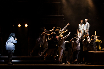 Jesus Christ Superstar is a retelling (with a number of liberties taken) of the last week of Jesus' life. The story is told equally from the perspectives of Jesus and Judas, starting just before their entrance into Jerusalem until Jesus' crucifixion. This version of the New Testament text attempts neither to confirm nor deny the divinity of Christ. Rather, it focuses on the humanity of Jesus. The character of Judas is written to personify the confusion, doubts and fears of all of Jesus' followers. To the musical's detriment, the presentation of the story assumes that the audience members know the tale, as few characters are sufficiently introduced. However, a high level of dramatic tension exists throughout to sustain sufficient interest in the piece, and the presentation is likely to be thought provoking and emotionally stirring for those already who already know the story. Jesus Christ Superstar was one of the first sung-through, fully conceived book musicals using rock music. The score was written by two relative unknowns (at the time), Andrew Lloyd Webber (music) and Tim Rice (lyrics). The music contains an effective mix of hard-driving rock rifts, wonderfully soulful ballads, and unique theatrical numbers. Rice's lyrics are extremely efficient, conveying the story along with the political and historical background of the time, all while achieving the high standards of musical theater songwriting. "Heaven on Their Minds", "Everything's Alright", "I Don't Know How To Love Him", "Gethsemane", and the title number have become Broadway classics. Director Timothy Sheader brings a bold vision to this mounting. There are a number of unique and daring ideas put on the stage, many of which add variety and interesting context or imagery. Not all of the ideas work–there are several that distract (one solo dancer used throughout obviously represents something, but it's unclear exactly what). Others lack clarity in storytelling, as with the scene at the Temple. However, the choices that do work are quite thought provoking, such as the use of crosses to represent various props–adding to the foreboding tone of the piece–and the repeated use of microphones, mic cords, and mic stands as both a nod to the early concert versions and as stand-ins for other elements. Sheader also provides several intriguing stage tableaus and uses many innovative theatrical devices during the 90-minute intermissonless staging. The very active choreography by Drew McOnie uses a lot of arm movement and dances with an organic feel to them. Mark Binns leads a great-sounding five-piece onstage band that is augmented by additional instruments played by cast members. I personally wish there were a few more pieces in the band instead of having to rely on synthesized sounds for all of the horns and strings. Jesus Christ Superstar requires two lead performers with strong singing chops, and this touring cast certainly has that. The role of Jesus provides many opportunities for vocal gymnastics by taking many lines up an octave or other variations from the primary melody. I own more than twenty different cast recordings of this score, and most of the performers who play Jesus do some of these. Jack Hopewell tackles them all, showing off a superb vocal talent that is a delight to hear. While I wish he showed a bit more depth in his acting during the first part of the show, his singing and commitment to the crucifixion scene are commendable. As Judas, Elvie Ellis supplies top-notch vocals as well, and clearly conveys the torment and inner conflict of the character. Faith Jones could provide a few more layers acting-wise to Mary Magdalene, but brings warm, soulful singing to her numbers. As Pontius Pilate, Nicholas Hambruch is especially impressive in his material after Jesus' arrest, and Erich W. Schleck displays great versatility and stage presence as King Herod. Isaac Ryckeghem possesses a beautifully rich bass voice which he puts to great use as Caiaphas, and Kodiak Thompson gives Annas some playful sass (and hits lots of chilling high notes as well). Colin Roberson does well as Peter, and provides acoustic guitar accompaniment at times. The entire hardworking ensemble deserves kudos for their dancing and vocal support throughout. The costumes and scenic design are provided by Tom Scutt. The multi-tiered set features many crosses, again pointing to the eventual death (and for Christian believers–the resurrection) of Jesus. The costumes for Jesus and the disciples are sweat pants and hoodies in muted colors, with more evocative outfits for the high priests, Herod, and Pilate. The lighting by Lee Curran has the stage washed mostly in white, with many rock concert effects added during suitable moments. The stop in Cincinnati is part of an extended 50th Anniversary tour, and the music and story hold up very well. This tour is blessed with excellent singers, effective dances and designs, and risk-taking direction that make it a unique experience, even for those of us who have seen our share of productions of the rock musical. Jesus Christ Superstar runs through December 18, 2022, at the Aronoff Center, 650 Walnut St., Cincinnati OH. For tickets and information, call 513-621-2787 or visit cincinnati.broadway.com. For more information on the tour, visit ustour.jesuschristsuperstar.com. |