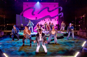 As with many of Shakespeare's plays, a large cast is essential, so there are 15 performers in this production, to a person strong singers and actors. In fact, given the effective and quick-change doubling of roles, 20 characters step forward during the show's two acts, covering two-and-a-half hours with an intermission. Shakespeare nerds need not fear that the silliness of As You Like It is diluted by this modernization, staged by Brant Russell, who chairs the acting department at the University of Cincinnati's College-Conservatory of Music. He keeps all the comic plates spinning and uses the musical numbers to underscore the characters' simple emotions. In fact, Shakespeare's twisty, frothy plot with no less than eight characters being mixed, matched, confused, and eventually paired off by the finale is helped along by a narrator (Hannah Gregory) who distills and advances the action with powerfully delivered songs. But between the songs there are plenty of scenes that hew close to Shakespeare's shenanigans, especially several of the comic figures. Geoffrey Warren Barnes II is Touchstone, the double-talking fool who bewilders just about everyone he encounters. Billy Chace splits his time between oafish, macho Charles the Wrestler and the simple-minded shepherd Silvius. Candice Handy does a fine job as Phoebe, the domineering object of Silvius's affection. And antic Colleen Dougherty as enthusiastic but simple country wench Audrey manages to bewitch Touchstone. Jennifer Joplin takes on the sober, melancholic courtier Jaques, best known for the "seven ages of man" soliloquy that begins, "All the world's a stage... " After incidental false starts, Joplin finally gets to deliver it with her warm alto voice as a somber but lovely second-act opening number. Courtney Lucien is both charming and animated as the central character, witty and smart Rosalind, who disguises herself as a smart-talking young man, Ganymede, to escape detection by a court faction that has banished her family. Her song, "I'm Gonna Be a Man," is great fun. She watches Orlando (K. P. Powell) out-wrestle the beastly Charles and instantly falls in love, only to learn that he's from the family at odds with her own. As they encounter one another in the Forest of Arden, Lucien quite wonderfully slips back and forth between girlish and macho when she intersects with Orlando, who's equally starstruck. He's been writing and hanging dreadful poetry throughout the forest. (Rosalind sings a song, "This Is Bad," as she encounters countless examples of his sappy rhymes–plucked from streaming tree banners dropped from overhead and festooned on greenery hanging from the balconies throughout the theater. (Samantha Reno designed the adaptable set that uses psychedelic projections by Robert Carlton Stimmel to represent various locales.) Rosalind's cousin Celia (Angelique Archer, another fine voice) travels with her and tries to talk sense but is usually ignored. When she encounters another handsome dude, Oliver (Rupert Spraul), she's quick to abandon her cautious ways. Sara Mackie needs to make a lot of quick changes since she plays the heads of both warring factions, the nasty Duke Frederick and the warm, generous Duke Senior. (These are male roles in Shakespeare's play, but Mackie convincingly converts them into women with strong personalities. She adds another excellent singing voice to many of the show's numbers.) Barry Mulholland initially plays Orlando's aged servant Adam. Then he steps into the role of Corin, a more worldly shepherd who befriends Touchstone. They spend some time around a campfire sharing a joint and delivering supposedly profound insights, including that "a great cause of the night is lack of the sun." That's a straight lift from the play's third act, made new and fresh by these very funny actors. Translating Shakespeare's play into other times and settings is risky business, but this production of As You Like It, admittedly one of Shakespeare's most lightweight plays, makes a strong case for how the process can work. Davenport's lively score, brought to life by talented singing actors and a band that accompanies without overwhelming with its volume, makes for a delightful, joyous, and thoroughly entertaining evening, wrapped up by "Rosalind's Epilogue" with Lucien picking up a guitar, singing, and eventually joined by the entire cast sending the audience off with a "thank you for the good vibe in the venue." As You Like It runs through April 29, 2023, at Cincinnati Shakespeare Company, 1195 Elm Street, Over-the-Rhine, Cincinnati OH. For tickets and information, please visit cincyshakes.com or call 513-381-2273. |