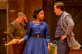 Cincinnati Shakespeare's production is a further testament to the relevance of this show , which Childress called a "drama-comedy." It's the backstage tale of rehearsals for a supposedly well-meaning, anti-lynching drama, Chaos in Bellville. We watch a mixed race cast of six struggling with an egotistical director and his frustrated stage manner. Often the performers evoked chuckles but also revealed their discomfort regarding caustic racial and gender stereotyping. On a cluttered backstage set (realistically designed by Shannon Robert and Matthew Leckenbusch with a warm but shopworn hardwood floor), veteran actor Wiletta Mayer (Candice Handy) meets Henry the elderly doorman (Joneal Joplin), who recalls seeing her onstage two decades earlier. More cast members arrive, beginning with John Nevins (Brandon Burton), a generation younger that Wiletta. He will play her son in Chaos, pursued by a lynch mob following his effort to register to vote. Wiletta advises John to be deferential to the production's imperious white director Al Manners (Justin McCombs). Soon they are joined by the remaining cast members: flighty Millie Davis (Brianna Miller); veteran Sheldon Forrester (Warren Jackson), who's opposed to rocking the boat; and sweetly innocent Judy Sears (Courtney Lucien), fresh out of Yale Drama School and brimming with naëëve idealism. Bill O'Wray (Matthew Lewis Johnson), a nervous actor playing Judy's character's father Renard, arrives in the second act, which opens with him practicing a lengthy monologue revealing some patronizing opinions. Rehearsals do not go smoothly as Manners' domineering ways–laced with undercurrents of racism and sexism–make everyone uncomfortable and are repeatedly met with objections by Wiletta regarding the stereotyped roles all are being asked to play. McCombs, known for his comic skills in many Cincinnati Shakespeare productions, handles this condescending and arrogant role with expertise, mistreating stage manager Eddie (played with frustration by Carey Davenport) and doorman Henry–as well as his cast. Sears denies any prejudice on his part and defends the shallow script they are rehearsing. But his overbearing behavior reveals attitudes implicitly rooted in disregard for the actors' concerns. Wiletta most sharply articulates these objections. She is being asked to play a woman who gives her son over to an angry crowd, assured by her white employer that he'll ensure the young man will be protected, a guarantee that is patently false. Wiletta, abandoning her earlier advice to John to acquiesce to the director's demands, pushes back, arguing that no loving mother would willingly allow her son's life to be placed in such jeopardy. Handy powerfully and convincingly inhabits the role of Wiletta, whose professional potential has been repeatedly thwarted by stereotypical casting. She chafes from the early moments of the story, building up pressure and finally boiling over midway through the second act. Only in her philosophical conversations with Henry, the elderly doorman whose age and Irish roots have been treated with prejudice, does she find a kindred spirit. He encourages her to imagine delivering a powerful speech, which she does–with a heartfelt, glowing recital of Psalm 133 to an imaginary audience as the show's closing moment. At the peak of chaotic discord in the rehearsal process, Warren Jackson's Sheldon recalls observing a lynching as a five-year-old child. In a sobering monologue, he conveys both a child's innocent perspective and an understanding of the corrosive impact the event had on his life. Childress' use of this device subtly points to how reality should not be swept under the carpet by the superficial and unthinking good intentions expressed in the script that is being rehearsed. Trouble in Mind is directed by veteran actor and playwright Torie Wiggins, who has become a go-to resource for shows that delve with insight and finesse into issues of race and gender. Surely rooted in her own experiences as a performer of color, Wiggins' genuine and thoughtful staging of this historic play with an accomplished and diverse cast is further evidence of her impact on Cincinnati theatre. Although the story Alice Childress told in Trouble in Mind is rooted in attitudes and prejudices just beginning to be resisted in the early years of the Civil Rights movement nearly 60 years ago, this play–and Cincinnati Shakespeare's production–is a reminder that it's a long, slow, uphill battle to overcome these issues and change behaviors. Trouble in Mind runs through June 3, 2023, at Cincinnati Shakespeare Company, 1194 Elm Street, Over-the-Rhine, Cincinnati OH. For tickets and information, please visit cincyshakes.com or call 513-381-2273. |