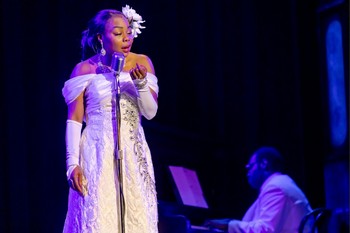 Lady Day, set in a none-too-elegant bar in South Philadelphia in March 1959, doesn't need much scenically: A few café tables at stage right and left offer seating for eight to ten audience members. An upright piano and a small platform with shell-shaped footlights and an upright microphone give singer-actress Brandi La'Sherrill and musician Dev Marvelous the necessary space to perform 16 numbers from Holiday's storied repertoire. Staged by Darnell Pierre Benjamin, the production offers a sad portrait of a talent cut short by a hard life. Holiday is at the low point in her career in this musical play by Lanie Robertson, likely Holiday's final performance just a few months before her death at age 44. After a year-long stint in prison for drug possession, her New York cabaret card was revoked, requiring her to seek venues elsewhere. "I used to tell everybody: When I die, I don't care if I go to heaven or hell, long's it ain't in Philly," the city where she was tried and convicted. But she finds herself there as her performance opportunities become increasingly limited. La'Sherrill, a fine singer and a resident artist with The Children's Theatre of Cincinnati, truly looks the part. Dressed in long gloves and an elegant white, off-the-shoulder gown spangled with glittering rhinestones, La'Sherrill comes onstage looking beautiful, but Holiday is none too steady. She sips a drink throughout her performance and stumbles off at one point, perhaps in search of a heroin hit to calm her nerves. Between the musical numbers, Holiday tells stories about her difficult life and career–abusive relationships with men, struggles with her teenage unpredictable mother, and especially virulent racism in pre-civil rights America when she toured the Southern states with white bandleader Artie Shaw. With accomplished jazz and blues piano-playing by Marvelous in the role of Jimmy Powers, who does his best to keep Holiday on track, La'Sherrill's rendition of songs are moving demonstrations of the singer's talent and the desire that held her together through years of difficulty. Her portrait of Holiday is that of a woman who's increasingly exhausted and occasionally unwilling to finish numbers, even though she says, "I just want to sing." During several of Holiday's best-known, iconic numbers–"God Bless the Child" (a number she wrote with Arthur Herzog in 1939 and recorded in 1941, describing how everyone is your friend when you have money, but "empty pockets don't make the grade"), and "Strange Fruit," a desolate metaphor for lynching–the truth behind the sad reality of her life is powerfully evident. The show has several upbeat moments with numbers including the romantic "What a Little Moonlight Can Do" and the jaunty "Gimme a Pigfoot (and a Bottle of Beer)." The latter song has La'Sherrill encouraging a bit of audience sing-along, and we see glimmers of Holiday's humor and her desire to connect. Nevertheless, Lady Day can be a tough tale to watch. Observing Holiday's sad decline makes the show's downbeat story and finale a somewhat odd choice for a summer of musicals. Nevertheless, it's a showcase for a pair of talented performers and certainly a powerful reminder of a career and a life that should have been more appreciated and extended. Lady Day at Emerson's Bar & Grill runs through August 20, 2023, at The Carnegie, 1028 Scott Blvd., Covington KY. For tickets and information, please visit thecarnegie.com or call 859-957-1940. |
