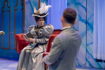 The Importance of Being Earnest is receiving a full-fledged three-week production with five of the central performers from The Rewards of Being Frank. Jeremy Dubin and James Evans reprise the male leads, sputtering but tenacious John "Jack" Worthing/Ernest and devilish Algernon "Algy" Moncrieff. Kelly Mengelkoch is back as strong-minded Gwendolyn Fairfax, and Tora Nogami Alexander reprises the role of sweet, naïve Cecily Cardew. Their successful chemistry in various combinations as couples and pairs is rooted in their familiarity with the roles, and the hilarity is supercharged by the return of Christine Pedi (a beloved Broadway performer who now hosts programming on SiriusXM's On Broadway channel) as the haughty and imperious Lady Bracknell. Rounding out the cast are three local performers regularly seen in Cincy Shakes productions along with Dubin and Mengelkoch, who are both longtime company members. Burgess Byrd is Cecily's stern governess with literary aspirations, and Darnell Pierre Benjamin portrays the secretly lusty Reverend Canon Chasuble. They play their none-too-secret attraction with besotted sighs and longing glances. Additionally, veteran comic performer Billy Chace plays a pair of servants–the judgmental butler Lane and the overburdened rustic gardener Merriman. Wilde did not imagine either role with the comic energy Chace uses, and he is hilarious–evoking a round of applause from the opening night audience as Merriman juggles Algy's overwhelming array of luggage while mumbling incoherently. The show has three acts: Algy's fashionable London flat, Jack's garden at his Shropshire estate, and the morning room of Jack's manor house. Cincy Shakes uses two intermissions to translate Samantha Reno's stage set from one locale to the next. Algy's home is elegantly furnished with Art Nouveau detailing. For the second act, the rear wall panels rotate to become rose-festooned lattices backing up period-appropriate white garden furniture with rose detailing. The third act's morning room is simpler than Algy's, light and airy–a perfect local as the ornate ins and outs of Jack's and Algy's deceptions are revealed. Rainy Edwards' Victorian costume designs are smart and detailed. Algy's fashionable suits match his sense of style; Jack's conservative attire is in the vein of a country gentleman. Cecily's girlish nature is reflected in her simple white frock, while Gwendolyn's suits represented a stylish, confident young woman. Which she is, until her "mama," Lady Bracknell, sweeps in: In the first act Pedi is attired in a steel-grey ensemble with an imperious hat augmented by sweeping feathers. In the second act, she wears a startling scarlet dress with broad shoulders. In both cases, Lady Bracknell's clothing is clearly meant to underscore her dominance of the characters she so sharply judges. It's a fine case of costuming enhancing a performance. The acting, of course, is central to the success of any production of Earnest, and director Brian Isaac Phillips has coaxed maximum performances out of each actor. In the first act, Algy and Jack banter about their deceptions. Algy has invented an invalid relative, "Bunbury," to employ as excuses to escape unwanted social obligations, while Jack's time in the country can be cut short when he has to return to the city to deal with his ne'er-do-well brother. In the second act, Jack is shocked to find Algy at his country estate making romantic moves on sweet Cecily, Jack's ward. This time as they debate, Evans' Algy stuffs his mouth with tiny muffins while verbally sparring with Jack. (On opening night he almost did himself in with one too many, much to the audience's amusement.) As Gwendolyn and Cecily, Mengelkoch and Nogami Alexander excel at conspiratorial revenge, taking their suitors to task for their evasive ways. Mengelkoch has an extremely expressive face with bright eyes that convey as much as words, such as when with simple stares she forces Jack to understand he must kneel to propose marriage to her. Cecily, a simpler character, uses coy smiles and intentionally naïve observations to get her own way. It's especially fun when Algy's arduous praise strikes her fancy, and she asks him to repeat his words so she can record them in her diary. At the top of the behavioral manipulative spectrum is Pedi as Lady Bracknell. She orders the younger generation to sit as if they were misbehaving dogs. As the reality of Cecily's wealth and Jack's true noble lineage (and his name actually being Ernest) is exposed, we watch her adjusting her sights to suit the situation to her own desires. It's entertaining to witness her wheels turning while her façade remains intact. Reverend Chasuble and Miss Prism's minor roles are integral to unravelling the truth behind the shenanigans, and Byrd and Benjamin do a fine job with these small, amusing portraits. Chace's hilarious take on the servants he plays is a study in all-but-unspoken physical comedy. Add all these elements together to constitute an exceedingly entertaining evening of classic comedy. One has to imagine that this is just how Oscar Wilde imagined The Importance of Being Earnest being staged, fully demonstrating "signs of triviality." The Importance of Being Earnest runs through August 20, 2023, at Cincinnati Shakespeare Company, Otto M. Budig Theatre, 1195 Elm Street (adjacent to Washington Park in Cincinnati's Over-the-Rhine neighborhood), Cincinnati OH. For tickets and information, please visit www.CincyShakes.com or call 513-381-2273. |