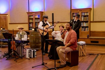 Utopia, Ohio tells the story of three distinct groups that attempted to establish communities in the same, small location along the banks of the Ohio River about 30 miles east of Cincinnati during the 1840s. Each group was seeking to create an idealistic world for its people: one focusing on freedom and anarchy; one founded on Christian spiritualism and anti-slavery efforts; and one a cult that believed the oceans would turn into lemonade and humans would quickly evolve into new creatures with tails. The musical focuses on three characters, one for each utopian community, seeking a new chance in life and how they were led to these groups. The score and book are the work of Joshua Steele, who has been active in various roles and positions in the Cincinnati arts scene for several decades. The show is almost entirely sung-through. The story is an intriguing one, and the primary characters–a widowed female shoemaker, an escaped slave, and a Jewish immigrant fleeing from persecution in Europe–are relatable and distinct. The songs are varied in style, with traditional folk and spirituals dominating the musical landscape, with bits of rockabilly, bluegrass, and more contemporary musical theatre sounds also incorporated. The lyrics mostly adhere to true rhymes expected of conventional musical theatre and include a number of very witty lines. Song highlights include "Ballad of Samuel Lee," a beautiful and melodic song for the escaping slave, "Hypocrisy," the Act 2 opener "Work Song," and "You Must Stay Behind," a lovely duet ballad. For the most part, the songs tell about the characters or action, rather than actually showing the interactions or conveying internal thoughts of characters. Instead of sung dialogue, there are lyrics such as "I hear him say" or "she said," which serve as sung narration. This is different from most musical theatre pieces, and likely limits the emotional impact of the story. The show's final number is reminiscent of the finale of Ragtime, another show that follows three distinct groups and which uses narration (though on a much more limited basis). The production is directed by Zach Steele, brother of the writer. The five actor-singers making up the cast play multiple characters and also accompany one another on a variety of instruments (most playing more than one instrument). Because of this arrangement, the blocking options are limited, especially in Act 1. The story, as well as the relationships between and distinctions among the characters, are generally clear, and there is good use of the performance space. Projections of illustrations of the characters and settings also certainly enhance the understanding of which character is singing. The costumes by Jim Stump are appropriate and contain small items which are switched out to distinguish changes in characters for a single actor effectively. The actors use hand-held microphones, but at the performance I attended, a number of important lyrics were obscured due to poor balance with the instruments or faulty amplification. The cast members are all solid singers, skilled actors, and versatile musicians. Director Zach Steele portrays Moishe, the Jewish immigrant, and supplies fervor in both his role and while playing guitar. Linsey Rogers portrays a number of supporting roles, providing distinct characterizations and praiseworthy accompaniment throughout. Jeremiah Savon Jackson sounds wonderful performing several of the show's best songs as Samuel Lee, and includes a number of touching acting choices. Jennie Malone is fierce and spirited as Sarah, the widowed shoemaker seeking a better life for herself. Brad Myers inserts most of the humor of the piece as he comedically portrays the founders and leaders of the three communities. Utopia, Ohio offers a unique and local story worthy of dramatizing, and a praiseworthy score. It demonstrates great potential as a musical theatre piece. Further development is needed to clarify the storytelling and add action to a piece that is currently somewhat restricted by the emphasis on narration, duality of performers as actors and the accompanying musicians, and the doubling of so many characters by the actors. This sold-out initial premiere of the show should be enough to encourage Joshua Steele to keep working on the piece. Utopia, Ohio runs through August 13, 2023, at the Carnegie Center of Columbia Tusculum, 3738 Eastern Avenue (just down the river from the setting of the show), Cincinnati OH. For tickets and information, please visit www.hugowesttheatricals.com. |