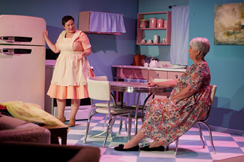 The tongue-in-cheek title, a twist on the clichéd greeting to a happy housewife when her hubby returns from a hard day's work, is an upfront clue that things are not quite what they might seem. In the opening scene, Judy Martin (Rachel Mock) swirls around her turquoise kitchen, assembling breakfast for her husband Johnny (Austin Michael Fidler) before he leaves for work. They tease one another about how happy they are, one-upping from "terribly" to "appallingly" to "offensively." A tad forced, it's a harbinger of things to come. Once Johnny is whisked out the front door, Judy pulls a laptop from a drawer, our first clue that this is an invented environment, not story set in a past time period. Judy is a "fantasist," someone who dreams about something desired and seeks to establish herself in an alternative reality. In fact, the Martins are engaged in a recent odd social movement, "tradwifery," in which a woman believes in and practices traditional marriage and sex roles. As counter as this might seem to contemporary notions of gender and behavior, such women claim they are not sacrificing women's rights by becoming submissive homemakers. It's their own decision. Following the opening scene, the play offers some context and challenges to Judy's chipper demeanor. A visit by her flighty friend Fran (Samantha Joy Luhn) is an opportunity to compare marriage lifestyles: Fran works part-time as a "stylist," and she's singularly uninterested in housework. Judy shares some recommendations, but it's evident that Fran won't follow through. As she departs, Judy receives a troubling piece of financial news in the mail, which she hides when her officious mother Sylvia (Cathy Roesener) drops by unexpectedly. A woman who grew up during the 1950s, Sylvia takes a dim view of her daughter's abandonment of a career in finance for a life of cleaning and cooking. Several mentions are made of Judy's hopes for Johnny's anticipated promotion and the added necessary household income it would mean. It becomes increasingly clear that Judy is not sharing the dark financial clouds with her husband. An evening's hospitality with Alex (ZoĆ« Peterson), his new boss at the real estate office, goes off the tracks when Judy, wearing an ostentatious dark fur stole, "over-caters" (offering a tray of a dozen deviled eggs) and makes a generally weird impression. Johnny's promotion goes to someone else, leading to outright hostility between the Martins while Fran and her husband Marcus (Aaron Whitehead) are present for cocktails. The second act flashes back to the moment three years earlier when Judy convinces Johnny to indulge more deeply in her fascination with the '50s. She's been offered "redundancy" from her job–in America we'd call it outplacement or even unemployment–with a financial enticement that will last for six months. Of course, we know it hasn't lasted. The generally humorous narrative of Home, I'm Darling offers some more serious insights into gender roles, workplace behavior, and women's issues, and the play's resolution suggests that open collaboration is the necessary path to true happiness. Wade's play, a twist on the "kitchen sink drama" from the '50s and '60s, portrays people disillusioned with modern society–in this case, seeking to escape into an illusory past. Mock convincingly plays a woman in love with a fantasy, but who is fearful of how it's not evolving as she had imagined. She steadfastly rejects her mother's painful recollections of what life was really like in the '50s, especially in a lengthy monologue that Roesener delivers with stern and disdainful intention. But Home, I'm Darling has a satisfying, if not entirely believable, conclusion when it's evident that Judy and Johnny's relationship is rooted in serious commitment. Mock and Fidler bring some genuine emotion to their final confrontation and decision about how to proceed, which we witness in a jaunty, unspoken epilogue that presents a kind of reboot to the play's opening scene. Wade's script is thoroughly British, and the actors do a passable job with accents, thanks to dialect coach Kate Glasheen. References to piccalilli sandwiches and nappies might put off American audiences slightly, but there's a lot of humor, delivered with snap. Scenes are well paced, thanks to Howell's efficient direction on Falcon's small stage, but some overlong scene changes diminish the show's momentum. This play, which originated in England in 2019, has had few productions in the United States. Thanks to Falcon for bringing forward a playwright and story not seen locally before, and in a production that will both entertain and provoke conversation. Home, I'm Darling runs through October 14, 2023, at Falcon Theatre, 638 Monmouth Street, Newport KY. For tickets and information, please visit falcontheater.net or call 513-479-6783. |