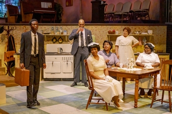 The Amen Corner is currently receiving its local premiere by the Cincinnati Shakespeare Company. Set in a 1950s storefront church in Harlem, the set (designed by Samantha Reno and evocatively lit by Jessica Drayton) is a split-level environment, a simple, meagerly furnished kitchen (with a new Frigidaire refrigerator), the focus of a neat downstairs apartment with an adjacent bedroom. Upstairs is the sanctuary with an upright piano and an out-of-place stained-glass window with an image of Christ, a source of congregational consternation about its cost. The play's central character is Pastor Margaret Alexander (Torie Wiggins), who strives to control her congregation and her teenage son David (Adrian DeVaughn Summers), a pianist who is drawn to a musical career. Her struggles are framed by a gospel choir, while her son and his long-absent father Luke ("Ranney"), a musician, bond over their love of jazz. Luke's reappearance after a decade away from his family is the catalyst for an upheaval within the church where Margaret has become the pastor, an unusual position of authority for a Black woman in the 1950s. She has positioned her single state as the result of Luke's abandonment, but it becomes clear that it was she who took young David and left. This revelation not only undermines her leadership, but it also causes David to question the path she has set for him to become a pastor himself. The often dissolute life of a musician has left Luke in poor physical shape, and he becomes bedridden in the apartment's spare room. Conversations between him and David evolve from awkward to mutual understanding and enthusiasm. Baldwin's novelistic inclination can be heard in several long speeches that contribute mightily to the show's impact, but also to its length–three acts and two intermissions with a running time close to three hours. Nevertheless, insightfully directed by Candice Handy and thanks to compelling acting and especially spirited choral singing of gospel hymns (Yemi Oyediran serves as music director and arranger), the story unfolds with a broad spectrum of the Black experience in mid-20th-century America. Wiggins's portrait of Margaret begins as an imperious leader whose aim is to keep her flock close to their faith. She ably captures the rhythms of religious sermonizing and uses her imposing presence to great effect as she displays her commitment to God. But her pious façade slips when Luke arrives, with failing health and revelatory remarks that cause her parishioners to question her leadership. The singularly named "ranney" is a powerful stage presence as Luke, and his arrival is startling to the gathered church members and concerning to Margaret. "Don't run from the things that hurt you," he declaims, advice pertinent to several characters. Margaret's assurance is further eroded when her piano-playing son begins to reveal that he is drawn to a musical career that will take him away from the upstairs church sanctuary. As David, Summers turns in a delicately drawn young man who grows in strength and conviction toward his own path as the story unfolds. The large cast has other standouts. Burgess C. Byrd is Sister Moore, a holier-than-thou advocate of the straight-and-narrow expectations imposed on Margaret, and Kenneth Early and Kyndra Dyanne Jefferies back her up as a married couple who have bristled under Margaret's stern ways. (In the third act, Early delivers a haunting solo a cappella hymn.) Keisha L. Kemper, as Margaret's older sister Odessa, is a right-minded exponent of pragmatic thought who does her best to support her sister as she wrestles with her path forward. Jasimine Bouldin provides a brief, moving portrait of a young mother struggling with the deaths of two infant children, unable to grasp how God could allow such devastation. While Cincy Shakes was established three decades ago to present plays by William Shakespeare, the company has broadened its repertoire to other stage classics, including works by American playwrights such as August Wilson. The Amen Corner, with a cast of 13 able Black performers directed by Handy, the company's director of education and herself an accomplished, versatile performer, demonstrates the theatre company's dedication to diverse talent and material. It's too bad Baldwin didn't continue to pursue his aspirations to be a playwright–there is genuine promise in this play. The Amen Corner runs through February 11, 2024, at Cincinnati Shakespeare Company, Otto M. Budig Theatre, 1195 Elm Street( adjacent to Washington Park in Cincinnati's Over-the-Rhine neighborhood), Cincinnati OH. For tickets and information, please visit www.CincyShakes.com or call 513-8381-2273. |