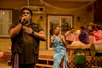 In fact, "soft" is Ijames's operative word for Juicy (Je'Shaun Jackson), the play's incarnation of the Prince of Denmark. In this version, the character is neither gloomy nor suicidal. In fact, as a young, gay, "thicc" (slang for sweetly overweight) person, Juicy claims that being soft is their M.O., despite the pushback and criticism heaped on them by other characters. However, like Hamlet, Juicy is indecisive about the path he's meant to follow. Juicy is haunted by Pap (David Everett Moore), his father who was murdered in prison (where he was serving time for the unwarranted murder of an employee at the family-owned barbecue joint). Like the ghost of Hamlet's father, Pap rematerializes (amusingly, in fact) to demand vengeance. Juicy hesitates and waffles, dubious of being sucked into the cycle of generational violence–"Like, your Pop went to jail, his Pop went to jail, his Pop went to jail, his Pop went to jail, and what's before that? Huh? Slavery. It's inherited trauma," in the words of Juicy's animated friend Tio (Geoffrey Warren Barnes II, in a physically spirited yet often insightful role), who is Fat Ham's version of Horatio. Other characters have issues and closely held family secrets that eventually burst forth. Juicy's mother Tedra (Marva Williams-Parker in the play's reflection of Queen Gertrude) has impulsively and quickly married Pap's ill-tempered, violent brother Rev (Moore's second and larger role), who's probably responsible for Pap's murder in prison. Larry (Malik Smith, in the role inspired by Shakespeare's Laertes) is back from a stint in the Marines, arriving in full dress uniform, but likely suffering from PTSD and even more fundamental doubts about his sexuality. His sister, cantankerous and sullen Opal (Jasimine Bouldin), the new incarnation of Ophelia, knows she's a lesbian, but hasn't been able to say so to her larger-than-life mother, Rabby (Burgess Byrd), a new version of Hamlet's stuffed shirt and verbose Polonius. A local stage veteran, Byrd is one of the show's unbridled comic centers. Each member of this ensemble shines in unexpected moments: Williams-Parker performs a mad dance inspired by karaoke; Barnes delivers a hilarious monologue about a hallucinatory drug-induced dream involving a lascivious gingerbread man; and Smith makes a remarkable transformation, supported by a startling evolution of the set (cleverly designed by Chris Holloway and Samantha Reno). Moore, playing both irritable (and deceased) Pap and arrogant Rev, clearly distinguishes between the brothers while also representing the genetic pool that Juicy is eager to swim out of. But it's Jackson (a 2021 graduate of Northern Kentucky University's theatre program) as Juicy who's the production's plus-sized anchor. He's both strong and vulnerable, a "Momma's Boy" (it says so on his t-shirt) and a fierce friend to disgruntled Opal. As Juicy, he can stop the action to share his thoughts and insights in asides and monologues spoken directly to the audience, sometimes dropping real language directly from Shakespeare's play. Juicy is the play's driving force, and Jackson totally inhabits the role. Singular credit is also due to director Benjamin, who has inspired his Fat Ham cast to manage the important balance between comedy and drama that make this 2022 Pulitzer Prize-winning script such an unusual theatrical offering. Benjamin, also an inventive choreographer and using a cast that's as impressively physical as it is verbal, keeps everything spinning toward a happy ending. It's not what traditional Shakespeare fans might expect from a show inspired by Hamlet, but I'm pretty sure this production of Fat Ham is one they'll embrace and recall for a long time. Fat Ham runs through September 22, 2024, at Cincinnati Shakespeare company, 1195 Elm Street, Cincinnati OH. For tickets and information, please visit cincyshakes.com or call 513-381-2273. |