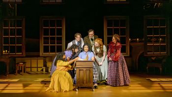 We meet Alcott (Beasley) at her writing desk as she wrestles with an editorial suggestion to write a novel about girls. She is resistant to the request, claiming she doesn't know many girls beyond her sisters and really imagines herself to have the soul of a boy. But as she introduces her actual sisters, the notion of fictionalizing them while recalling many of the events of her own life, she warms to the task and begins the process of spinning out a story that's told with humor and heart. In Beasley's sparky, opinionated portrayal, Louisa (who prefers "Lou" and defines Josephine March as "Jo") is staunchly and ambitiously her own person. Jo is the ringleader among her siblings–older sister Meg (Hannah Fawcett), who has the most traditional trappings of a young woman, musical Beth (Brianna Woods), and impetuous kid sister Amy (Sammy Rat Rios)–even as they follow their own paths and strike out in directions that Jo would not choose. The family is guided by their wise, steadfast mother, Marmee (Connan Morrissey, who also has a one-scene appearance as judgmental Aunt March). Familiar male characters are played by two actors. Lively Laurie (Rocco Weyer) is the charming boy next door who resonates emotionally with Jo but is spurned by her fierce determination to be independent. John Brook (Kieran Cronin) deferentially courts and weds Meg; when Jo goes to New York to pursue her profession, she is drawn to the kindly intellectual, Professor Friedrich Bhaer (Cronin again; he also plays two other small male roles). Gunderson's script is a modern and effective adaptation. The actors play both Alcott's actual family as well as her novel's characters. Some dialogue is precisely Alcott's own, but Gunderson moves the story along and offers lighthearted commentary by having the actors step aside and directly address the audience about the characters' behavior, motives, and feelings. Such moments frequently evoke knowing chuckles from the audience. From top to bottom, this is an excellent cast with actors from Cincinnati (Beasley, Morrissey and Cronin) and Portland (Fawcett, Rios and Weyer), as well as one from Dallas (Woods). Louisa May Alcott's Little Women is a co-production between the Playhouse and Portland Center Stage, where it was onstage in November and December, and this collaboration has ensured a satisfying polish to the production. The longer run has enabled the actors to add depth to their performances. Beasley gives tangible texture to tough-minded, sometimes intemperate Jo (as well as Alcott), and Morrissey's Marmee has several powerful moments, especially giving maternal advice to Meg early in her marriage and to Jo when her emotions are at odds with her life's possibilities. Joanie Schultz, the Playhouse's associate artistic director and a reliably excellent creator of memorable productions, has staged this warm-hearted show thoughtfully. Her frequent collaborator, movement director and intimacy coordinator Vanessa Severo (assisted by actor Woods as dance captain), has provided subtle but deliberate choreography that makes the story move and flow with grace and meaning. Scenic, lighting, sound, and costume designs are further pluses to the show. Chelsey Warren's set, with two banks of suspended, wood-framed, 12-paned windows surrounded by twining vines and foliage evoke the New England setting. Lovely touches include bird songs (sound design by T. Carlis Roberts) and red ornaments that show up momentarily on the vines when the story's events happen at Christmas. Modest furnishings–a fireplace, Alcott's writing desk, Beth's piano (used plaintively during her period of declining health)–all come and go with carefully arranged movement. Sarah Hughey's lighting design offers subtle accents to enhance the moods of various scenes. Period costumes by Lucy Wells are authentic to the era with subtle nods to each character. Gunderson's use of author Alcott to open and close this telling of the story rooted in her own life, as well as the interpolation of observations by various characters, makes this delightful version memorably distinct from the many ways, dramatic and cinematic, that it has been told. It's definitely a version of Little Women for the 21st century, one that I'm certain will become yet another of the playwright's works that will turn up on stages across the U.S. in the years ahead. Louisa May Alcott's Little Women runs through February 15, 2026, at Cincinnati Playhouse in the Park, 962 Mt. Adams Circle, Cincinnati OH. For tickets and information, please visit cincyplay.com or call 513-421-3888. |