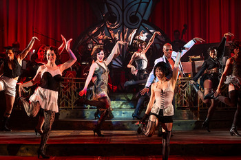 Masteroff's splendid book fuels the show, which is based on John Van Druten's play and Christopher Isherwood's stories. Musical director Angela Steiner leads a spirited group of musicians who are positioned on stage. The versatile instrumentalists (including a nifty accordionist) are key contributors. Alan Paul's imaginative and thoughtful imprints prevail as his interpretation and texturing distinguish the exceptional performance. The Kit Kat Klub of Berlin in 1929-1930, features ensemble members who sashay and shimmy down the Boyd-Quinson stage aisles and mingle with a few theatre patrons. Throughout, this presentation is immediate, and anyone sitting in proximity of the performance space will feel thoroughly a part of the scene. Call it a full immersion if not engulfing experience. The Emcee (Nik Alexander) leads singer/dancers in a sinewy "Willkommen" and the journey begins. Clifford Bradshaw (Dan Amboyer) is a youthful American wannabe novelist who moves into a boarding house run by Fraulein Schneider (Candy Buckley). Sally Bowles (Krysta Rodriguez) is an English singer who, with the Kit Kat group, brings us "Don't Tell Mama" and "Mein Herr" early on. Fraulein Schneider and Herr Schultz (Richard Kline), seasoned individuals, share romantic inclinations and combine voices on "It Couldn't Please Me More." The classic words of "Tomorrow Belongs to Me," a song that foretells of the Nazi threat to human existence, fills the theater twice before intermission. The eclectic mood shifts much darker. The second portion of the show, after the dexterous Kit Kat Band introduces with the "Entr'acte," finds dancers who star through their flexibility and coordination. Choreographer Katie Spelman's work is inventive and embellished. The two primary relationships, that of Cliff and Sally as well as Schneider and Schultz, are in jeopardy. Rodriguez's Sally delivers "Cabaret" with grit and heartfelt emotion. Dictatorial, life-altering Germany hovers and looms. Fear and depression dominate as an exhausted yet magnificent collection of actors close the proceedings. Alan Paul allows for hope and love during the time Berlin was a center of excitement. Toward the conclusion of the first and longer component of the musical, the precursor of totalitarianism through the Nazi regime becomes increasingly evident. Anti-semitism is no longer covert but incrementally relentless and haunting. Performer Nik Alexander, as the Emcee, is penetrating through his searching eyes and wiry body. He's a combination of energy and, perhaps, malice. Alexander's rendition is nothing short of transfixing. Krysta Rodriguez plays Sally as one who, always on edge and on the edge, is passionate and confident. The entire cast is commanding, empowered, and vehement as they step and then hurtle forward. Paul does not hurry his actors and each individual entices observers to vicariously experience the Kit Kat Klub. Later, however, the director moves toward a disturbing vision, one filled with agitation and potential horror. Taken cumulatively, this Cabaret is thematically impassioned. Rodrigo Munoz's costuming (bold and sometimes revelatory) actively shapes mood as the dancers' outfits precisely reflect time and place. The choices inspire. Philip S. Rosenberg's lighting, too, is assertive, varied, glaring and flaring. Ken Travis' percussive sound design influences with dramatic effects at precise moments. Barrington Stage's Cabaret transforms from decadence to the precipice and promise of tragedy. Paul, coordinating and coaching a brilliant orchestral cast of performers, permeates with a galvanic, absolutely engrossing event. Cabaret runs through July 8, 2023, at Barrington Stage Company, 30 Union St., Pittsfield MA. For information and tickets, please call 413-236-8888 or visit barringtonstageco.org. |
