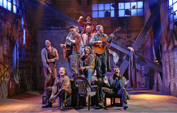 We are in Jerusalem just after Jesus's death and his disciples are distraught, angry, confused, and also frightened. They are in a room and blast away with the first number, "Walk Away," as a unit. The beginning of the show is jarring as a contingent of overly agitated individuals lambaste one another and, really, the audience as well as they thrash about. Later on, this presentation achieves a nice balance as the rock score includes far greater variety; there's also a nice balance of dialogue and song. Robert Schenkkan provides book and lyrics while Neil Berg contributes music and lyrics. John Doyle both directs and designs and Adam Souza is musical director. Doyle places a larger-than-life crucifix (it seems gigantic) so that it leans against both the stage and a side wall. Otherwise, an exit within the wall comes and goes toward the rear of the stage as, particularly, Mags (Adrienne Walker) and Mother Mary (Rema Webb) enter and depart. "Anyone But Me" is an early highlight when many of the disciplines, through music, contemplate their fates aloud. Jimmy (Etai Benson) and Mags are an involved couple whose interpersonal relationship carries some import. They sing "Magdalene" together. It is Rema Webb's Mother who sings to the rafters with a combined Gospel/soul rendition of "Rain" in a show-stopping moment. The Mourner's Kaddish, recited in Hebrew, immediately follows. Bart (Rob Morrison) and Phil (Brandon J. Ellis), each with an acoustic guitar, are softly effective with "Sweet Dream." Tom (Wesley Taylor) is a bit of an outcast who, at one point, declares, "We all die alone," and that's cogent since one of the underlying questions of the piece revolves around Jesus and the question of why he did die. Neil Berg's music moves from almost heavy metal at the outset toward a much more melodious mode and, at the concluding segment, a half dozen full company pieces ending with an exclamatory "Our Love." That portion begins with "Lazarus" and accelerates into a pulsating crescendo. It is a stimulating, energetic sequence. Robert Schenkkan is an award-winning bookwriter and lyricist whose words for The 12 match either the vigor or poignancy necessary. Goodspeed's Adam Souza and several musicians complement the actors' strong voices. One is able to appreciate both the value and thematic intent of this show without having been steeped in a particular religious doctrine. As a rock musical, this one scores many points. The instrumentalists are talented and the music director does well to honor lyrics. The first segment of the presentation, when the apostles are mostly raw with rage, leaves little room for nuance. That might be the initial aim but it's just a bit much to withstand. When the performance yields to softer voices and complicated emotions, that sensitivity leads to a more inspiring artistic product. Ann Hould-Ward's excellent costuming brings includes jeans, sneakers, jackets, flannel, and other contemporary but well-worn garments. Those choices fit with a group of vexed people who are hyper-stressed, unsure of where they are headed, and staggering with the shock of having lost a person referred to as "teacher." The decision to stage the work straight through without intermission is wise because the immediacy of the predicament and the vibrancy of the music are continual from the opening moment of the production. These folks are in severe distress and unable to rationally process a way forward after the crucifixion. The music provides them with an outlet, a means to vent, and the Goodspeed show is both appealing and more effective perhaps fifteen minutes into its evolution. The 12 runs through October 29, 2023, at Goodspeed Musicals, 6 Main St., East Haddam CT. For tickets and information, please call 860-873-8668 or visit Goodspeed.org. |
