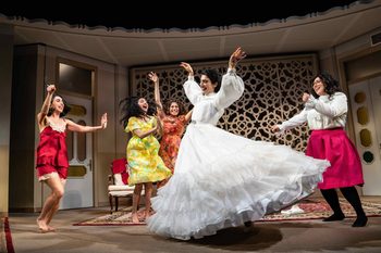 Set designer Omid Akbari has created living room spaces in Karaj, Iran, as scenes slide from one to the next ever so elegantly while the story unfolds. The era depicted in Iran was one of repressive fear in contrast to a far more liberal previous period. Toossi made a wise decision not to proselytize through her dialogue but, rather, to occasionally allude to difficult circumstances and oppressive atmosphere. At the outset, Salme (Bahar Beihaghi) is about to get married and she sits literally within her enormously puffy white wedding gown, provided by costume designer T.F. Dubois. Nazanin (Anita Abdinezhad) and Rana (Vaneh Assadourian) tend to her hair and more. Nazanin and Rana are very best friends. Zari (Ava Lalezarzadeh) sprawls on a white couch situated to the rear of the stage. She's a demonstratively irreverent soul, while Shideh (Shadee Vossoughi) has her sights set on medical school and a career as a physician. For now, she has the skill to trim toenails. For a long time, these women exchange words centering on virginity and a certain anatomical body zone which allows for sexual intercourse: use your imagination, please. The slang-filled back-and-forth is delightfully amusing and it enables everyone in the house to sit in on the show-and-tell aspect what appears to be a party. This ends–it's over and done with. Rana, who is Jewish, is first to go and three others follow as the years roll on from the late 1970s forward. Others become brides and Salme wears a hijab as she prays at length. Ultimately, Nazanin, who gets married and has children, is the only individual to stay, consistently, in Karaj. Perhaps she is the most grounded. At the very end of the play, Rana, not in touch for more than a decade, calls Nazanin from San Jose, California. Wish You Were Here shifts from casual, sweet, humorous rendering of relationships amongst a group of women to far more intense and insightful performance. During the initial portion of the play, when they are possibly in their early twenties, they poke fun at one another even if they are obviously close. Will that bond transcend time? Director Sivan Battat varies the pace with a deft touch. The entertaining and almost delectable opening moments beg for swift movement and Battat accommodates. Later, when feeling and anxiety escalate, there's need for more nuance and space to realize the intensity. In all, Battat's task is to balance and juggle to match the author's purposes. She conducts exemplary versatile actors who absolutely seem to be buddy-like before establishing separate, more mature identities. In all, Wish You Were Here is a multi-faceted play that spans a wide variety of dispositions. Toossi does not slam home politics but instead says much with fewer but impactful words. For example, Zari's line: "Your place, my place or the bomb shelter." Toossi's English, the Pulitzer Prize winner which is completing its run at Barrington Stage Company, is fine work but Wish You Were Here is heart-wrenching and at least as enduring. Finally, seeing the show at a time when violence permeates the Middle East and the region is aflame, well, the implications are inescapable. It isn't possible to walk away from the theater just now without reflecting on and pondering the ramifications of such an absorbing production. Wish You Were Here runs through October 28, 2023, at Yale Repertory Theatre, 1120 Chapel St., New Haven CT. For tickets and information, please call 203-432-1234 or visit yalerep.org. |