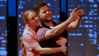 Seth Eliser as Sam and Allie Seibold as Molly shine in the leading roles, but the standout performance in the show is given by LaDonna Burns in role of Oda Mae. Burns is so good that she almost makes you forget Whoopi Goldberg's performance in the film. The other parts are ideally cast and everyone in the show is vocally strong. The production is visually stimulating and keeps one glued to the plot. So, even if you have seen the film of Ghost many times, you will still want to check out Ghost the Musical at Music Theatre of Connecticut. Like the company's recent production of Jersey Boys, Ghost is nimbly staged, with actors making entrances from several different areas, including the aisles. It may take a little bit for this production to find its footing, once it hits its stride it is gripping, with the songs punctuating memorable moments in the plot. What really makes it work, though, is the sincerity of the performances. As Sam, Seth Eliser is quite wonderful and he especially stands out in the first act finale song "I Had a Life" and, of course, in "Unchained Melody." This actor also has the gift of making the supernatural aspects of the plot ring true and his final moments are genuinely tear-inducing. As Molly, Allie Seibold is enormously touching and brings her beautiful, plaintive singing voice to such ballads as "With You" and "Nothing Stops Another Day." Eliser and Seibold are married in real life and their scenes together are full of tenderness. In the other major role–the unsympathetic role of Carl–the good-looking Matt Mancuso is perfectly smarmy and he pulls off the part flawlessly. And then there is LaDonna Burns as Oda Mae. She enters about midway through the first act and immediately commands attention. In fact, she gives the whole production a jolt and one eagerly awaits each of her scenes. Burns brings hilarity to the part, but she is terrific in the serious scenes, as well. She nearly stops the show with her big second act song, "I'm Outta Here." It's hard to convey just how special Burns is in this show, but it can be said that she is absolutely outstanding and would make Ghost worth seeing just for her performance. After conquering this supporting part, Burns deserves a show of her own. The rest of the cast is quite fine, including, at the performance I attended, understudy Miguel Angel Acevedo, who was excellent in the role of Willie Lopez. Also making a strong impression is Scott Mikita as a subway ghost, notably in the song "Focus." The rest of the cast play a multitude of roles and there is not a weak link among them. Although Ghost doesn't allow for very much dancing, choreographer Clint Hromsco works wonderfully with the director in keeping the musical on the move. The set design by April M. Bartlett is attractive and appropriate, enhanced by employing vertical panels at the back of the stage, which can be slid side to side for the performers to make entrances. These panels also work splendidly with the standout projection design by RJ Romeo, who also provides the mood-setting lighting design. Costumes designed by Diane Vanderkroef are spot on, with the outrageous robes and outfits for Oda Mae being especially memorable. And Tony Bellomy is the masterful musical director, leading the fabulous off-stage band. Ghost the Musical at Music Theatre of Connecticut has the remarkable ability of making one feel as if they are experiencing this story for the first time. The human connection between the two leading characters is touching and heartfelt, bringing the whole musical to a transcendent final scene, which may make you weep. There is real magic making in this production, making it something of a must-see. Ghost the Musical runs through April 28, 2024, at Music Theatre of Connecticut, 509 Westport Ave., Norwalk CT. For tickets and information, please visit www.musictheatreofct.com. |