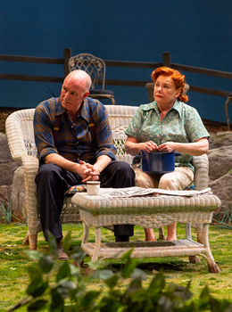 Joe Keller (Michael Gaston) opens the play in the backyard of his home, somewhere in this country in August of 1946. A gust of wind has tipped over a tree that honored Larry, the son of Kate (Marsha Mason) and Joe. Frank Lubey (Dan Whelton) comes around as will Dr. Jim Bayliss (Godfrey Simmons Jr.). Designer Riw Rakkulchon has impressively created a large, looming exterior of the Keller house and, upon occasion, the interior is lit. Ann (Fiona Robberson), oftentimes called Annie Denver, has spent the night there. Larry, who disappeared, used to be her boyfriend. Pivotal Chris Keller (Ben Katz), who is Joe and Kate's son, appears and tells his father that he asked Ann there because the two of them plan to get married. The conversation ends and Kate comes out and talks of visualizing Larry. Miller's plot reveals that Steve Deever, Annie's father, and Joe were in business working at an aircraft factory, and defective engines shipped from that factory caused twenty-one servicemen to die. Steve Denver was found to be at fault for sending out the flawed parts. Kate clings to her hope that Larry is still alive but Joe knows otherwise. Chris is in love with Annie, wants to have a family, yet works for Joe. Kate still is certain that Annie will marry Larry, whom she imagines will return. Other supporting characters include Jim's wife Sue Bayliss (Yadira Correa), Lydia Lubey (Caitlin Zoz), who is married to Frank, a boy named Bert (Malachy Glanovsky) and, most important of all, George Deever (Reece Dos Santos). He is Ann's brother and his entrance, quite late in the show, heightens fraught anxieties even further. All My Sons debuted on Broadway in 1947. Ultimately, it focuses upon one's ethical choice and juxtaposes evil and good. It is set just after World War II ended, as Americans looked to family renewal and rebirth. Some turned a blind eye to war's consequences and sought happiness which had been so elusive. Kate, either delusional or suffering memory loss, figuratively clings to the felled tree in the yard. Annie, Chris and Joe accept that Larry has passed on and they live in the present with expectations of a better future. Melia Bensussen directs the current presentation with specificity and honors the author's structure by building, through increments, toward the staggering final section of the play. Perhaps the conclusion is excruciating for some to take in but, on the other hand, both the writing and embodiment of Miller's characters are exacting and enviable. Michael Gaston, bringing multiple New York City stage credits as well as many, many more on film and TV, is precise and disciplined as he fully inhabits his role as Joe Keller. Marsha Mason, a familiar star cast as Kate Keller, fully realizes the complicated, distressed woman. Actress Fiona Robberson, as Ann Deever, is gripping. Trained at Juilliard and NYU, this appealing performer captures Annie's dilemma, wears her anxiety on her face as she visibly reacts to others' dialogue and runs through a wide-ranging scale of emotions. It's a distinctive and sometimes transfixing turn of acting. The entire ensemble of actors is most convincing. The air has a heavy feel throughout this potent Arthur Miller play, one which will cause you to squirm in your seat before it nearly takes your breath away. It is a detailed, stressful, ever engrossing tragedy which makes for sterling live performance. All My Sons runs through May 5, 2024, at Hartford Stage, 50 Church St., Hartford CT. For tickets and information, please call 860-527-5151 or visit www.hartfordstage.org. |