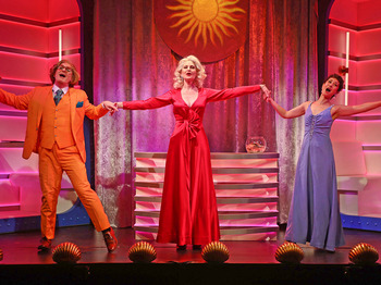 Tresnjak jams in plenty of subplots so please do not expect to recall it all since that is very much beside the point. More important, this is original, imaginative stuff. In addition to Burnett, I thought of Gilbert & Sullivan when "A Piece of Cake" concluded the first act. If you choose to interpret the action and jokes literally, murder has more than something to do with the storyline. That said, it's all harmless enough, what with sight gags and exaggeration carrying the day and the play. From the very first visual and the fish (this might be a piranha) belching, it's impossible to be serious about the proceedings. Ask for the Moon runs through August 11, 2024, at Goodspeed Musicals, Terris Theatre, 33 N Main St., Chester CT. For tickets and information, please call 860-873-8668 or visit Goodspeed.org. |