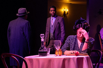 She Loves Me takes place primarily in the Parfumerie, a shop run by Zolton Maraczek (Raphael Nash Thompson). He is a rigid man who has stiff requirements for his employees. Georg Nowack (suave Julius Thomas III) helps him run the store. Several clerks run around assisting customers. "Sounds While Selling," an early song for a presentation which lasts two hours and forty-five minutes, exemplifies the mood. Georg has been writing letters which a woman identified as "Dear Friend" appreciates, and off goes the plot with this mysterious correspondence. Amalia Balash (Alicia Kaori) is a skittish yet appealing young woman who arrives at the shop with the intention of landing a job. Kaori showcases her voice on "No More Candy" and again and again on various numbers. When she opens the candy box, music plays, and musical director Miles Plant provides the chime effect. Plant is pivotal to the success of this show, since he plays keyboard, accordion, and more while conducting four splendid musicians who combine delightfully on violin, cello/guitar, trumpet, and clarinet, and other woodwind instruments. Watch Plant and you will see that he is animated, focused, and facially expressive. Before the first act concludes, Maraczek and Georg, failing to see eye-to-eye, quarrel and Georg quits his job. Meanwhile, a budding romance is in the air as Amalia sings "Will He Like Me?" In all, one feels wonderfully involved in the goings-on within this shop in Budapest in 1937. This period piece feels authentic rather than dated, as an ensemble of skilled actors bring a joyful vivaciousness to the stage. As said, the audience sits on two sides, the third side is home to the band and the fourth, across the stage, includes the Parfumerie supplies. The performers easily slide set pieces around and about. Designer Emmie Finckel advises that "the floor pattern is inspired by the mosaic outside of St. Stephen's Basilica in Budapest!" During the second and shorter act, Maraczek becomes more benevolent. Georg is concerned about Amalia and finds his way to her home. She feigns surprise that she is actually pleased to speak with him–and more. The final scene finds everyone jauntily sprinting into Christmas with vigor as they sing and dance with great gusto. Chris Bell's movement choices, here and previously, fuel a snappy, brisk pace. Alicia Kaori, playing winsome Amalia, has great vocal range and her upper register rings very true. Julius Thomas III, opposite her as Georg, demonstrates a warm, honest presence and it's easy to root for him. The quality supporting actors are impactful as their characters are individually charming and blend together gracefully. This company honors the tender nature of this musical. Whether the scenes are within the store or in a cafe, they feel genuine. Some are kinetic and others softer. Long Wharf adroitly makes theatre happen in positive ways. A few years ago, it departed a former home just across Interstate 95 from Long Island Sound. Artistic Director Padrón (with, one supposes, other key individuals) locates likely spots for productions. Now, within the confines of a space which was once a gymnasium, this 60-year-old regional company has most successfully reinvented itself with this production. She Loves Me runs through December 15, 2024, at Long Wharf Theatre, The Lab at ConnCORP, 245 Morse, St., Hamden CT. For tickets and information, please call 203-693-1486 or visit longwharf.org. |