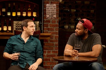 In the first quarter, it is 2004, a time when LeBron James is an NBA rookie and, from the get-go, is both a stunning talent and an attraction. Matt (Gregory Perri) tends bar at an establishment that is loaded with wine. Matt wants to sell his remaining season tickets to the Cleveland Cavaliers games. Shawn (George Anthony Richardson) loves LeBron and the basketball team but tries to low-ball Matt with a ticket bid far below the scrambling, scruffy bartender's asking price. This unlikely duo achieve a sweet camaraderie even as they diss and dismiss one another. Rob Ruggiero directs with specificity as Joseph's play spins into its second quarter, 2010, when LeBron (through vocal amplification) indicates that he will be leaving the Cleveland Cavaliers for the Miami Heat. By now, the protagonists' lives have begun to draw them apart. Shawn hopes to become a media writer and Matt's days at the wine bar are concluding. The first portion of the show winds down while the audience (everyone watching is near the stage at cozy TheaterWorks) becomes fully involved and wonders what comes next. Returning from a brief intermission, one finds that by 2014 James is returning to the Cavaliers, hellbent on bringing Cleveland a long-awaited championship. Meanwhile, Matt works at what was his mother's store, a place replete with tchotchkes, knickknacks, items which might or might not be antiques, and a beloved unique-looking armadillo. Shawn, having made it in Los Angeles, takes a break from television writing to return and hang out with his old friend. Suffice to say that Shawn is now the more intriguing of the pair because he has evolved. Matt, with a hangdog expression, is forlorn but could harbor hope for brighter days. The actors demonstrate exceptional timing yet there is no indication through biographical information that Perri and Richardson have worked together before. Nothing is wasted and each moment is maximized. They are individually convincing and have manufactured a sense and knowledge of one another. It seems as if they might have been portraying their characters for a year rather than for a rehearsal process which led to the current run. Matt and Shawn go at one another, verbally, with vigor during the first hour of the production. They do, however, trust and care about one another. Matt is low on cash and down on his luck and possibilities; Shawn sees a defined path and goal within his reach. The playwright effectively laces his script with comic lines and the over-arching LeBron James motif. Those who haven't a clue as to the ways and wherefores of basketball need not fear. Being a hoop fanatic is not mandatory and everyone should be able to appreciate the presentation. Basketball fans who have watched as James has become the foremost forty-year-old to play basketball at the highest level will bring that acumen to the theater. Rajiv Joseph, author of this clever, catchy play, provides dialogue that flows swiftly and easily. It is pleasurable to watch and listen as the actors deliver through back-and-forth exchanges which are natural. Luke Cantarella's set design enhances throughout. He first situates the action at the wine bar, with exposed brick in the background and suitable bottles and accouterments. At intermission, the stage revolves to reveal the shop and an array of items on display. Cantarella's trappings further support this crisp, appealing show, one with depth within its humor. King James runs through March 2, 2025, at TheaterWorks Hartford, 233 Pearl St., Hartford CT. For tickets and information, please call 860-527-7838 or visit twhartford.org. |