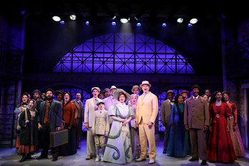 Could America, as the early 1900s evolved, become a melting pot for individuals coming from different places, all of whom wish for goodness, stability and, more urgently, survival? Scenic designer Emmie Finckel has created a high archway that frames the actors who tell stories. A movable staircase figures in prominently during a variety of sequences, and the set pieces are delightfully malleable. Stephanie Bahniuk's costumes are period perfect, providing necessary flavoring. The entire company is rousing with the title tune, "Ragtime," one of the many production numbers which highlight this show. A well-to-do family based in New Rochelle, New York, includes Mother (Mamie Parris), her Younger Brother (Behr Marshall), Father (Edward Watts), Little Boy (Sawyer Delaney), and Grandfather (Stephen Tewksbury). Mother is stationed at home and she wishes to establish her identity while Father takes off for the North Pole because, well, he wants to go there. Mother finds a little baby of color in the garden and she cherishes the child. Coalhouse Walker Jr. (Michael Wordly) is a Harlem musician and father of the baby, whose mother is Sarah (Brennyn Lark). During the latter portion of the first act, the two performers blend on "Wheels of a Dream," through which they express optimism for the future. Tateh (David R. Gordon) is a Jewish immigrant who arrives in New York with his daughter, known here as The Little Girl (Sofie Nesanelis), and strives to avoid poverty. Emma Goldman (Blair Goldberg) pushes him to join her in the Socialist movement. The plot spins forward when Tateh and his daughter depart for Boston and happen to meet Mother along the way in New Rochelle. Every so often, Booker T. Washington (Denver Andre Taylor) offers some narrative, which serves to facilitate and clarify the story line. A touch of comedy is most welcome and provided a few times when Evelyn Nesbit (Mia Gerachis) embodies the fetching girl on a swing. Director Betts and Choreographer Sara Edwards fashion an in-your-face production which, in this case, is all to the good. The performers sing out directly to the audience. The aisles in the orchestra section of Goodspeed are narrow, so when the performers stand there and sing late in the show, theatregoers experience the rush of energy, warmth, and musicality they possess. This is a bonus for patrons. One feels actor Michael Wordly's passion and force during the second act on "Coalhouse's Soliloquy," "Sarah Brown Eyes," and "Make Them Hear You." Mamie Parris lifts her voice for "Back to Before," a plaintive tune. The Epilogue, featuring the entire cast combining on "Ragtime" and "Wheels of a Dream" is irresistibly pulsating. Ragtime, ultimately the story of intersecting journeys, is immense in scope. It seems a gargantuan effort is required to mix all of the moving aspects and mount a coherent whole. Most of the cast members could be singled out but, for example, let's focus upon Edward Watts as Father. A seasoned performer, Watts is exact with his performance and utilizes his strong baritone voice several times, one on a solo reprise of "New Music." Behr Marshall, who received training at Connecticut's Hartt School, unites voices with Blair Goldberg, playing Emma Goldman, on "The Night That Goldman Spoke at Union Square." Mamie Parris's performance as Mother evokes strength and zeal throughout nearly three hours of theatre. The same must be said about Michael Wordly's convincing portrayal of Coalhouse Walker Jr. Brennyn Lark, as Sarah, is quite moving. The Goodspeed production is filled with alacrity, joy, high drama, and, always, ensemble enthusiasm. Adam Souza, conducting the pit orchestra, directs a group of adept musicians to be proactive rather than accompanists. Ragtime runs through June 15, 2025, at Goodspeed Musicals, 6 Main St., East Haddam CT. For tickets and information, please call 860-873-8668 or visit Goodspeed.org. |