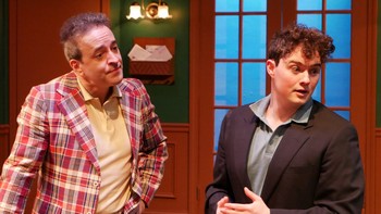 The play begins with the various cast members directly addressing the audience with a host of pithy one-liners. The plot is essentially the golf match between the man who runs the country the club, Bingham (the terrific Josh Powell), and one of the best players at the club, Dickie (played by the amusing Sean Hannon). Not to give too much away, but the game is somewhat rigged and a great deal of money is at stake, as well as the antique shop that belongs to Bingham's wife Muriel (portrayed with grand wit and sophistication by Anette Michelle Sanders). Ken Ludwig excels at comedies like this and The Fox on the Fairway is just as good as Ludwig's other works, Lend Me a Tenor and the book for the musical Crazy For You. If this story is relatively lightweight, the actors work overtime to keep the audience energized, with some belly laughs along the way. The cast is uniformly fine and the interplay among the actors and various plot points that keep popping up are adeptly handled. Other characters include Justin (the funny and adorable Ted Gibson), who works at the country club, and his girlfriend Louise (played by the fine Erin M. Williams at an almost hysterical level, without being too much). The lovely and stylish Missy Dowse portrays Dickie's ex-wife Pamela, who works alongside Bingham. Scenic designer Sean Sanford provides the perfect set for the show, with plenty of doors and an especially plush couch at center stage that is used hilariously. Costume designer Diane Vanderkroef has really outdone herself, and the golf sweaters and costumes she has designed are so gloriously (and appropriately) hideous that they nearly stop the show. Of course, with a farce like this, the action very rarely stops for a moment during the two hour running time (with an intermission). The lighting design by Peter Petrino is stellar and the sound design provided by Jon Damast is crystal clear, with one especially funny scene in which one of the characters accidentally talks into a microphone he doesn't know is on. The Fox on the Fairway contains a wonderful conceit at the very end of the show: the actors are asked to reenact the entire action of the production and they are able to accomplish this in under a minute's time. Considering how gleeful this show is throughout, this coda is like the icing on an extremely tasty cake. The cast seems to be having the time of their lives and The Fox on the Fairway at Music Theatre of Connecticut offers the audience a joyous and much-needed evening of zany entertainment. The Fox on the Fairway runs through November 23, 2025, at Music Theatre of Connecticut, 509 Westport Ave., Norwalk CT. For tickets and information, please visit www.musictheatreofct.com. |