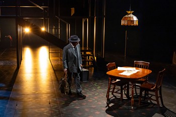 Scenic designer Sara Brown sets the stage with a framework of a house, complete with staircases and landings. The wise choice opens up the stage, providing great depth for actors and props to easily arrive and depart. It's an unobtrusive, clever look and allows for all of the action to occur mid and downstage right before the audience. Willy Loman (a most distinctive Peter Jacobson) lives in Brooklyn but is on the road to New England where he sells goods. During the opening sequence of the play, he returns home completely fatigued and admitting that he almost crashed his car. His loyal wife Linda (Adrianne Krstansky) thinks Willy (perhaps around 60 years of age) should approach his boss Howard Wagner (Peter Zeller) and ask for a local assignment. Willy is preoccupied that his son, Biff (Samuel H. Levine), has become a failure at age 34 after a potentially lucrative start to his life. Biff was a high school football star who created his own negative scenario when he could not graduate. Happy (Max Katz) is his younger brother and the siblings experience a reunion, a complicated time itself. Biff evidently overshadowed Happy and both are currently wanting. The second act of the play finds Willy, with bravado, marching into Howard's office and more or less demanding that his employer revise his position, permitting Willy to stay home and, just as important, not drive. For now, that is all you need to know. Some of Miller's supporting characters become essential players. Charley (Paul Michael Valley) lives near Willy and at one juncture offers his friend a job. Willy turns it down. Bernard (Stephen Cefalu, Jr.) is Charley's son. Biff and Happy were his teenage contemporaries. During those adolescent years, Bernard was very much the nerd but at present he is a well-respected, articulate attorney. Willy is astonished that it is Bernard who is a thriving professional and a young man now married and raising a family. Willy Loman is not a bad man who tries to maintain confidence, but he is fretful and anxious. He is destined to be on the road and dependent upon his ability to pitch, hawk, and peddle products to make enough money to exist. Some people have thought Willy to be callous and even vicious. Arthur Miller, speaking of his protagonist, disagreed, once commenting, "The trouble with Willy Loman is that he has tremendously powerful ideals ... The fact is he has values. The fact that they cannot be realized is what is driving him mad–just as, unfortunately, it's driving a lot of other people mad." Exceptional actors such as Lee J. Cobb, George C. Scott, Dustin Hoffman, Brian Dennehy, Philip Seymour Hoffman, Wendell Pierce and many others have embodied Willy. Nathan Lane has the role for the current Broadway presentation. Peter Jacobson distinguishes himself as Willy evidences a variety of moods and shifts of mind. He is desperately worried but attempts to conceal his fears and insecurities. He flies into rages with his sons and even at his boss. This Willy is internally furious and he will seize opportunities to verbally explode whenever he can. Jacobson has credits Off0Broadway, at many regional theatre companies, on TV, and in films. His discipline and regard for detail is impressive. His facial expressions indicate just how distraught and despairing he is. The cumulative cast performance is exemplary. Patrick Zeller depicts Howard as a man whose temperament runs the gamut from seemingly kind to explosively mean-spirited. Zeller successfully heightens emotive reaction, in a late scene with Willy, in a single moment of time. This Salesman works for fans of the play as well as for someone who has little or no knowledge. An individual, sitting next to me, when asked by his friend at intermission, responded that he thought the story to be sad. During the final thirty minutes of the show, tears streamed down this man's face as he watched the conclusion of an Arthur Miller classic. Death of a Salesman runs through March 29, 2026, at Hartford Stage, 50 Church St., Hartford CT. For tickets and information, please call 860-527-5151 or visit HartfordStage.org. |