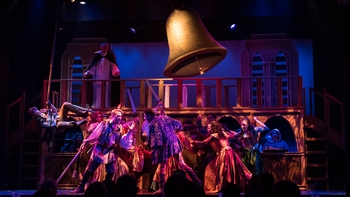 The musical received pre-Broadway productions in California in 2014 and Paper Mill Playhouse in New Jersey in 2015 before it was made available for regional licensing. Seeing the production at the Downtown Cabaret Theatre, one can feel a certain heaviness about the musical, which includes a full onstage choir, but there are enough virtues and, most especially, exceptional songs in the piece to warrant a visit. Director Christy McIntosh-Newsom is faced with the daunting task of presenting this somber musical and, on the whole, she has succeeded very well. On a two-level set, masterfully designed by William Russell Stark, her large cast is positioned in various areas onstage, as they serve as both choir members and as stone gargoyles who oversee the proceedings. There are essentially five leading roles and the actors who portray them in this production are uniformly excellent. As Clopin, the fine Joe Cardoza leads off the show with the stirring "The Bells of Notre Dame." Joining in is the character of Dom Claude Frollo, who ultimately serves as the villain in the musical. Perry Liu is most convincing as this holy man with a dark secret, and Liu is wonderful singing such songs as "Hellfire" and "Rest and Recreation," which he shares with Nicholas Kuell as Phoebus De Martin. Nicholas Kuell possesses both the appropriate stature and the strong voice that the role of Phoebus De Martin demands. Also doing well is Alexis Willoughby as the heroine Esmeralda. Just about all the characters are mesmerized by this alluring woman, and Willoughby's lovely performance certainly warrants all this attention. She especially shines in the touching song "God Help the Outcasts" in the first act before dueting beautifully with Kuell in the second act number "Someday." And then there is, of course, the title character, named Quasimodo, who lives secluded in the cathedral under the watchful eye of Frollo, his only connection to the outside world. One could argue that any production of Hunchback will rise or fall on who is cast in this central role, and Downtown Cabaret Theatre has the phenomenal Ben McCormack in the part. Possessing one of the most gorgeous voices I've ever heard, this actor is a stunner in his soaring opening solo, "Out There," and then he seems to get even better as the plot unfolds. With minimal changes to his costume (supplied by the talented designer Jessica Camarero) and effectively applied makeup that McCormack believably becomes Quasimodo, the most hideous creature in the town. This actor also contorts his facial expressions and uses the way he walks about the stage to convey the fact that he is a monster. But one truly comes to care for Quasimodo and his plight, and McCormack is simply astonishing throughout, especially when he delivers "Made of Stone" and the gloriously sung "In a Place of Miracles," which he shares with Kuell's Phoebus and Willoughby's Esmeralda. As seen at the Downtown Cabaret Theatre, The Hunchback of Notre Dame is a demanding show, both for the people putting it on and for the audience watching it. But because the Alan Menken and Stephen Schwartz score is so good, director Christy McIntosh-Newsom works so well with her designers, and the offstage band is so terrific, this Hunchback of Notre Dame is a dark but wholly worthwhile show. The Hunchback of Notre Dame continues performances at Downtown Cabaret Theatre in Bridgeport, CT through October 15, 2017. For tickets, please visit www.dtcab.com or call the box office at 203-576-1636. |
