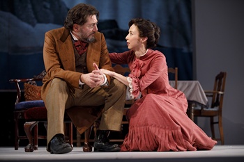 Actors and stagehands, strolling up and down the aisles 10 minutes before opening curtain, mingle and converse with willing theatergoers. For example, Reg Rogers (in the lead as Doctor Thomas Stockmann), a known, fine performer both in New York City and at regionals, smiles broadly and exchanges greetings in most relaxed fashion before ascending the stage. The same is true for Joey Parsons (Mrs. Catherine Stockmann), who laughs easily and does a bit of a solo dance before readying for performance. The director's decision to commence informally creates a friendly, warm, inviting environment. The actual plot of An Enemy of the People is anything but kindly. The bathing facility in the small Scandinavian village plays a pivotal role in keeping the town fiscally solvent. Dr. Stockmann has discovered the toxic quality of the water as the system discharges. He contacts Hovstad (Bobby Roman), editor of the paper and, seemingly, a progressive man. Also attending is Aslaksen (Tyrone Mitchell Henderson), who sets print. These two at first appear to support Stockmann. Yet the protagonist's brother, Mayor Peter Stockmann (Enrico Colantoni), is vociferously oppositional, fearful of the expense should the situation need to be corrected. Thereafter, Hovstad and Aslaksen both turn against the doctor. Scenic designer Emona Stoykova's set revolves, and the second portion, after intermission, finds many seated people on either side as Dr. Stockmann, an idealistic soul, declares in an impassioned speech that people must listen to conscience. His immediate family members, including spouse Catherine (Parsons), daughter Petra (Stephanie Machado), who has been teaching but who will be fired, and Petra's little brothers all stand by this man. Still, the doctor is dismissed even as he, given his strength of character, is forthright and steadfast. The combination of imaginative directorial approach, top quality acting, and original music makes certain that what otherwise might be deemed melodramatic or didactic Ibsen is, instead, attention getting. The play's messaging is altogether timely and welcome. Dr. Stockmann is animated and emotive, while his brother the mayor is opportunistic. Catherine prods her husband to stay true and his daughter seems to have inherited traits from her father, the physician. Aslaksen points out several times that he is a moderate. He represents homeowners and, well, he is an exasperating individual. Captain Horster (Setareki Wainiqolo) is loyal to the doctor. Morten Kill (Jarlath Conroy), father-in-law of Dr. Stockmann, is wealthy and runs tanneries which Stockmann reveals are polluted. During intervals, actors engage in dances created by choreographer David Dorfman; these are lovely, spirited interludes. Throughout, costumer Sophia Choi's selections are period appropriate. Precise casting provides for uniformly expressive, disciplined performance. Rogers, as Stockmann, is particularly persuasive as he grabs the doctor's urgent argument and fully delivers. Parsons, as his steadying, faithful wife, never vacillates. The production is fluentable to accentuate positions which are ever relevant during our early 21st century. The current rendering evidences director James Bundy's distinctive perception of the play. An Enemy of the People continues through October 28, 2017, at University Theatre as part of Yale Repertory Theatre's season in New Haven, Connecticut. For information and tickets, call (203) 432-1234 or visit yalerep.org. |
