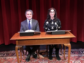 One of the beauties of this play is its inherent simplicity: each production essentially features two performers seated at a table reading through a collection of letters that chronicle the relationship of Melissa and Andrew from kindergarten to their late middle age. Since each set of actors taking on these roles has the luxury of reading from scripts, the play can be produced almost anywhere, without the need for the performers to have to memorize their lines. Having seen Gleason onstage in an Off-Broadway production of The Normal Heart as well as in the Broadway musical Dirty Rotten Scoundrels, it was a gift to bask in her expertise in such an intimate setting. She certainly earned all of the laughs in the script, and she brought more of an inner strength and less vulnerability to the character, making the ultimate heartbreak of Melissa's journey all the more unexpected and profound. It was very special to witness this talented actress return to this role after thirty years. Knowing Chris Sarandon strictly from film (particularly from his Oscar-nominated performance in Dog Day Afternoon), I found the actor to be just terrific onstage, and he seemed to emphasize Andrew's tenderness for Melissa. This Andrew seemed a little less authoritative, though still strong and funny, than I had seen before. Also, Sarandon's rapport with Gleason was effortless as the two actors played off each other splendidly from beginning to end. Director Kevin Connors can take a great deal of credit for creating this kind of intimacy and naturalness, and it is a nice touch that Music Theatre of Connecticut added a ten-minute intermission at an appropriate place in the play. Though the play is short, about 90 minutes, being able to take a slight breather from watching the characters go back and forth actually makes the second half more powerful and moving. The stage looks great at Music Theatre of Connecticut, with a beautiful Oriental rug on the playing area and the wooden table the two actors sit at placed far upstage. The lighting design by Michael Blagys is ideal and Diane Vanderkroef provides the appropriate costumes for the actors. It's anybody's guess how the two upcoming couples in Love Letters will do compared to the grandness of Chris Sarandon and Joanna Gleason, but Kevin Connors is a fine director and, whoever you see will no doubt bring their own riches to the evening. Love Letters, through February 11, 2018, at Music Theatre of Connecticut in Norwalk CT. Beverly Ward and Kirby Ward will be featured from February 2nd through February 4th and Scott Bryce and Jodi Stevens will be playing the last weekend, February 9th through February 11th. For tickets, please visit www.musictheatreofct.com or call the box office at 203-454-3883. |