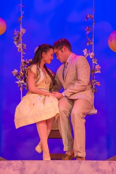 Before getting to that flaw, there is a lot to celebrate in this staging. Musically, the show sounds delightful, featuring a two-member onstage band, under the music direction of Jill Brunelle. What's more, scenic designer Martin Scott Marchitto has crafted a lovely and ornate set that serves as an ideal setting for this delicate musical. Likewise, Elizabeth Saylor Cipollina's costumes are absolutely beautiful, adding to the atmosphere of this jewel-box of a production. Playing the principal lovers at the center of the show, Ryan Bloomquist and Kimberly Immanuel are terrific. The handsome Bloomquist shines as Matt, the young hero, and he looks and sounds ideal, especially in the songs "I Can See It" and the next-to-closing duet, "They Were You." The duet is shared with Kimberly Immanuel, who proves to be a perfect Luisa. From her opening number, the exciting "Much More," this actress practically blossoms onstage and also partners her costar wonderfully in the songs "Metaphor" and "Soon It's Gonna Rain." The fathers of Matt and Luisa, Hucklebee and Bellomy, have been cast with two women, Patricia Schuman and Carly Callahan, making them "mothers" instead. And while this might have seemed like an interesting experiment, it doesn't really work. And that's a shame, because Schuman and Callahan are talented performers. But, despite their best efforts, their two big duets, "Never Say No" and "Plant a Radish," go for next to nothing. Still, considering that these two characters are supporting parts, their casting does not spoil the show overall. As El Gallo, David Pittsinger, who was so great in the recent Ivoryton Playhouse productions of South Pacific and Man of La Mancha, is just as good here and he delivers an especially stirring "Try to Remember." Portraying the two comical actors Henry and Mortimer, R. Bruce Connolly and Will Clark, respectively, are quite endearing. The most outstanding performer in this production has no lines: playing The Mute, Cory Candelet is incandescent and inventive, managing, miraculously, to steal the show. The Fantasticks at Ivoryton Playhouse also features one of the most outstanding displays of lighting design I have ever seen: lighting designer Marcus Abbott really outdoes himself here, with his work magically changing the mood by employing a gorgeous array of colors in light each scene. Just about all the elements of this production are sterling, resulting in a show that is sure to enrich and entertain the audience. The Fantasticks, through April 8, 2018, at 103 Main St., Ivoryton CT. For tickets, please visit www.ivorytonplayhouse.org or call the box office at 860-767-7318. |