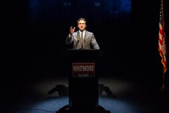 Senator Charles Whitmore (a convincing Graham Rowat) is running for re-election in North Carolina. A few days before voters go to the polls, school children were shot in a town most familiar to the Senator. He went to the building, reporting "I saw the bloodshed with my own eyes." Whitmore also is said to have made a Twitter comment indicating that, given the gun violence, he is questioning his belief in God. For the purposes of this play, unabashedly advocating for humane constriction of gun usage, Whitmore has two women in his life. One is his attractive, quintessentially Southern wife, Sara (Judy Jerome). When she learns that her husband might not have total faith in God, she tells him this might be even worse than his having an affair. Actress Keira Naughton plays Alex Klein, who is managing the campaign. A Jewish, liberal, wisecracking, candid, hyper New Yorker, she is a Democrat. The structure of the play allows the women, during the latter portion of this one hour and fifteen minute piece, to spend some moments by themselves. Rounding out the cast is Andy Talen, who plays a variety of roles, including Tom, Marshall, Reporter, and Security Guy. Charlotte Cohn, married to the playwright, directs and wisely pushes pace. Her actors, utilizing aisles and the intimate performance space, are energized and specific with their movements. This artistic collaboration is valued and the pair has worked together on other Jason Odell Williams plays. Charles Whitmore has been a "compassionate conservative," a man who values football, religion, the Second Amendment and more. Now, however, he is shocked by what he has witnessed. His conscience, if it had been resting, is now arousedforever. He is a conflicted individual who is urged by others to stay the course with all of his prior beliefs and advocacies. After all, he has been a Republican and one whose Christian values have carried him far. Williams is most adept as he delineates characters. The Senator is an emotional wreck while his saucy wife has the latitude to flaunt and flirt. Alex Klein is perpetually agitated, irritated, and desperate to get Whitmore to listen to her advice. Playwright Jason Odell Williams has explained that he was influenced and perhaps called to author this play given the tragedies at Virginia Tech, Sandy Hook, Tucson, Parkland and others. He did not wish to compose a heavy-handed play. Hence, he spices his story with in-your-face comedy, too. Still, he says, "I hope this play speaks to your heart. Because, for me, that's the only reason to write anything: to speak to each other's hearts." Graham Rowat sports a lengthy list of stage credits. He was superb a few seasons back in the Berkshire Theatre Group production of Constellations. Now, he accurately nails Whitmore's accent and persona from word one and carries forward with consistency, nuance, and drive throughout. Jerome and Naughton are each passionate and fieryin differing ways. Talen's various roles are important as they provide links within the plot. While this is, for certain, a play which takes a position and packs an ardent, soulful message, it has been written to be inclusive, with the hope that all people will listen to one another. Thus, Williams' script is a brave one and it benefits from truly incisive performances at the Unicorn. Twice, Whitmore quotes John Lennon, whose lyrics include "God is a concept by which we measure our pain." Church & State, through June 30, 2018, at Berkshire Theatre Group's Unicorn Theatre, 6 East Street, Stockbridge MA. Tickets may be purchased by calling 413-997-4444 or visiting www.BerkshireTheatreGroup.org. |