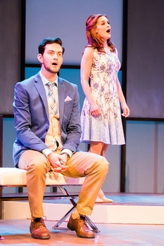 Truth be told, musicals that try to shoehorn songs into a narrative usually turn me off, but Burt & Me feels novel and fresh, managing to avoid the pitfalls typically inherent in shows like this. And while it probably helps to have a love of Burt Bacharach/Hal David songs going in, Burt & Me should be a pleasure for just about everyone. This evening of entertainment evokes nostalgia and fond memories, as well as laughter and tears. Seven actors are listed in the program, but the bulk of the songs are sung by the ingratiating and extremely appealing Andy Christopher as Joe. While it may have been generous to give more songs to the other performers, one soon gets swept up in Joe's life. The book for Burt & Me is by Larry McKenna and includes a great deal of wonderful dialogue, with Joe talking directly to the audience throughout. But in a musical entertainment like this, the key moments are the delivery of the songs, and this actor comes up aces there as well. From a lovely "(There's) Always Something There to Remind Me" to start off the show, Christopher's singing is just amazing, and these Bacharach songs, with their complex melodies, can't be easy to sing, though Christopher certainly makes it seem like they are. Highlights include a splendid "This Guy's in Love with You" and an extremely moving "A House Is Not a Home" in the second half of the show, with the performer's impressive rendition of the title song from the Bacharach musical Promises, Promises proving to be a tour de force. Burt & Me is not a one-man show, however; there are six other actors sharing the stage. As the girl Joe falls in love with, Lacey, Lauren Gire is pretty great and she especially shines in such songs as the second act opener, "Blue on Blue," which she shares with her leading man, as well "I Say a Little Prayer," with the full company eventually coming in. My personal favorite of her numbers is "Knowing When to Leave" from Promises, Promises, sung as a duet with the equally talented Adrianne Hick as Lacey's best friend Sally. Another performer who stands out is the comical Josh Powell, who plays Joe's friend Jerry and is just terrific singing "The Look of Love." At times I wished that some of the other actors had more to do than to just provide background harmonies, which, admittedly, are a key part of just about every Burt Bacharach song. Still, Neal Mayer is touching as Joe's father, and it is just sensational to watch Lauren Gire, Adrienne Hick, and Katie Luke, recreate some of the Michael Bennett choreography from "Turkey Lurkey Time" to mark significant moments in the plot. Director Brian Feehan has staged Burt & Me very well, and the evening flows smoothly. Scenic designer Emily Nichols provides an attractive, 1960s-like background for the action and Lisa Bebey's costumes are entirely appropriate throughout. The excellent musical director Michael Morris leads the phenomenal onstage band superbly. Ultimately, Andy Christopher is at the center of the show is, and he is completely winning from the moment he steps onstage. Burt & Me is strikingly different in style and concept than most musical revues highlighting composers, and is all the better for it. Burt & Me, through April 7, 2019, at Ivoryton Playhouse, 103 Main St, Ivoryton CT. For tickets, please visit www.ivorytonplayhouse.org or call the box office at 860-767-7318. |