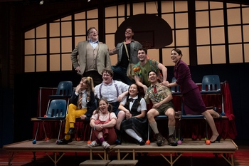 ACT of Connecticut has found a way to present this musical in a way that makes even one very familiar with the show feel like every aspect of it is newly minted. A great deal of the credit goes to director Michelle Tattenbaum, whose pacing of the production is animated and sparkling, with all the jokes landing perfectly. And William Finn's effervescent score sounds as good as ever, as sung and acted by this excellent group of performers. On Jack Mehler's gleaming set of a high school gymnasium, the action begins with the oddball group of expert spellers entering the stage, each one of them with a certain uniqueness and quirkiness that is just wonderful. From the moment Rona Lisa Peretti (excellently played by Amy Hutchins), the teacher who is conducting the spelling bee and a former spelling bee winner herself, leads the opening number, one immediately feels that this show is in very good hands. Things get even better as the show goes along, with many highlights along the way. Even knowing the various funny lines in the musical, the laughs manage to galvanize the audience, as if the show is being presented for the first time. In the role of William Barfee, the speller with the "magic foot," Phil Sloves is a joy and truly idiosyncratic, seeming both weird and appealing. Graham Baker is a great deal of fun as Leaf Coneybear, with his big number, "I'm Not That Smart," coming across deliciously. As perfectionist speller Marcie Park, Sumi Yu is enormously endearing singing "I Speak Six Languages," with her character almost daring herself to fail. Just as good is Colin Miyamoto as Chip Tolentino, whose particular "problem" during the spelling bee wins a great deal of laughter, and Miyamoto leads off the second act expertly with the humorous song, "Chip's Lament." Emma Tattenbaum-Fine is just right as Logainne Schwartzandgrubenierre, who has two fathers and a bit of a speech impediment, and she scores in her individual monologues and with the song, "Woe Is Me." As Mitch, the "comfort counselor," who is only helping at the spelling bee to satisfy his parole, the brawny Ryan Williams is a riot, and John C. Baker is just as fun as Mr. Panch, who gives each speller their word to spell as well as providing a definition of the word and using the word in a sentence. Baker's dry delivery of these lines is spot-on, for maximum hilarity. If there is one performer who stands out just a little bit more, it is the touching Morgan Billings Smith as Olive Ostrovsky, who gets the best number in the show, "The I Love You Song," which truly pierces the heart. Providing the expert musical direction of the terrific offstage band is Katya Stanislavskaya, and Ilana Ransom Toeplitz's choreography dovetails just perfectly with Michelle Tattenbaum's direction. The 25th Annual Putnam County Spelling Bee, in addition to being consistently amusing, also looks great in this production, with ideal costumes designed by Stephanie Levin and very effective lighting design by Marika Kent. Just about everything comes together flawlessly in this production, and it should satisfy those who have seen Spelling Bee before, as well as those who are experiencing it for the first time. The 25th Annual Putnam County Spelling Bee, through June 23, 2019, at A Contemporary Theatre of Connecticut, A Contemporary Theatre of Connecticut, Ridgefield CT. For tickets and information, visit www.actofct.org or call the box office at 475-215-5433. |