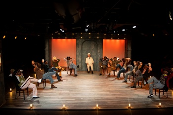 This production draws its power from many different sources, with casting being a key part of what makes it so good. The structure of this musical is that of a minstrel show, with such characters as "The Interlocutor," "Mr. Bones," and "Mr. Tambo." Except for Dennis Holland, doing an excellent job as The Interlocutor, the cast is African-American and almost all male, although they sometimes take on Caucasian and/or female characters, with the aid of Vilinda McGregor's astounding costuming. While one might think that imposing this style of a Minstrel show could distance the audience from the actors, and their characters, this devise actually works very well. The audience comes to care very much for all of the people in this show, which makes the harshness of the story all the more heartbreaking. While Troy Valjean Rucker is a standout in the company, there are uniformly impressive performances by Ivory McKay as Mr. Bones, and Torrey Linder as Mr. Tambo. The cast work as a true ensemble, with everyone doing near flawless work in their portrayals. "The Lady," played by Renee J. Sutherland, haunts the show from beginning to end, with almost no dialogue and just a little bit of dancing. When Sutherland does finally speak, at the very end of the show, she delivers a knockout punch. Director Sean Harris has done a Herculean job staging the show, with a sharpness that is spellbinding. His work is matched by masterful choreography by Darlene Zoller. Just about all the elements come together perfectly, and if The Scottsboro Boys will not be for all tastes, because of its frightening nature, it certainly is quite an achievement for Playhouse on Park and ranks as one of the most successful shows that I have ever seen at this regional theatre. The scenic design by David Lewis is spare yet magnificent, with equally fine lighting design by Johann Fitzpatrick. The choreography by Darlene Zoller is awesome and sometimes, appropriately, frightening. The off-stage orchestra, with expert music direction by Melanie Guerin, does a great job playing John Kander and Fred Ebb's incredible score (with the matchless original orchestrations by Larry Hochman). Playhouse on Park's The Scottsboro Boys is one of those shows that will linger in your mind long after you see it. The Scottsboro Boys, through August 4, 2019, at Playhouse on Park, 244 Park Rd., West Hartford CT. For tickets, please visit www.playhouseonpark.org or call the box office at 860-523-5900. |