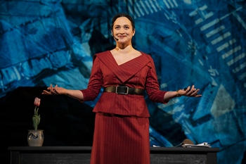 It is 2007 and Jane Snake (Lily Gladstone) snares a Wall Street job offered her by Joe (Danforth Comins). From Oklahoma, Jane, whose father recently passed away, abandons her mother Bobbie (Carla-Rae). We learn that the native tribe, a few centuries before, lost its base in Manahatta to traders from Amsterdam led by Peter Minuit (Jeffrey King). Through its one hour and forty-five minutes, Manahatta demonstrates the odds Native people have faced. Jane works at Lehman Brothers and disaster is imminent. The lure of quick riches is undeniable. All actors are playing multiple roles in this show, with each contemporary character also playing a character in the past. For example, Jane is also Le-le-wa'-you. In that capacity, she startles the Dutch during the 1600s, with her computational skills and ability to grasp English. Costumer Stephanie Bahniuk places a shawl-like cape over actress Gladstone's shoulders, with her contemporary dress (the presentation moves backward and forward in time so swiftly) is beneath. The combination of Mariana Sanchez's lovely set, Mark Holthusen's projections, and Emma Deane's lighting enables instantaneous movement from one era to the other. The Lenape's Se-ket-tu-may-qua appears, through imagery, behind the actors as they perform. The audience can observe people who lost a foothold in North America several centuries back. The current family, left with unpaid bills and a mortgage payment threat, must grapple to survive in Oklahoma. Jane's ancestry is of a revered and precious culture, and she is hoping for something better for herself within the male dominated, corporate world of lower Manhattan. That, she discovers, is cutthroat commercialism. Playwright Nagle has stated that the word Manhattan is a derivative of Lenape's "island of many hills." She is a member of the Cherokee Nation, writing with authenticity. Realizing that Lenape people today are not in one geographic locale, she has centered on Oklahoma. The play is also about strong women. Jane leaves not only her mother Bobbie (Carla-Rae) behind but also sister Debra (Shyla Lefner). All three women are soulful and each inspires. Jane's trajectory brings her to New York while her older sibling remains at home to support Bobbie. The quality of performance in Manahatta definitely impresses. it is essential for actors to gracefully flip from one persona to another. Jeffrey King, cast as both Minuit and as Lehman's Dick Fuld, excels. The men of the production include T. Ryder Smith (Michael and Jonas Michaelius), Danforth Comins (Joe and Jakob), and Steven Flores (Luke and Se-ket-tu-may-qua). All are commendably versatile. The women, however, are profoundly indelible. Their situations are multi-faceted and each finds obstacles which might jeopardize survival. Ultimately, it is impossible not to sympathize with these female characters. Director Laurie Woolery must accommodate as the show, sometimes through composer Paul James Prendergast's interesting music, snaps from one century to the other. Ty Defoe, movement director, has an important influence as the actors adapt. It is all a great deal to take in. Both the creative team and responding actors pull this relevant and significant production together. Engrossing from the outset, it is something of a challenge, at first, to follow, but that eases as both past and present are cleanly depicted. Manahatta runs through February 15, 2020, at Yale Repertory Theatre, 1120 Chapel St., New Haven CT. For tickets, call 203-432-1234 or visit yalerep.org. |
