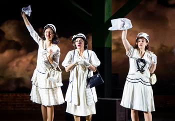 Taking place in 1929 in the Ybor City section of Tampa, Florida, Cruz brings us to a cigar factory. Justin Townsend's set includes several huge beams supporting the factory and the initial design features looming clouds in the background. The aforementioned initial moment finds Eliades (Wilson Jermaine Heredia) barking out "Cockfights!" Two half brothers, not close ones, gamble wildly as Eliades runs the show and provides play-by-play. Santiago (Gilbert Cruz) owns the warehouse and bets poorly. Cheche (Alexis Cruz) is down on his luck and eventually reveals a violent side to his character. Ofelia (Bianca Camacho) is Santiago's wife and she is poised near the harbor for the arrival of a new lector, Juan Julian (Alex Rodriguez). Her attractive adult daughters accompany her. Conchita (Marina Pires) is the elegant, older sister while Marela (Gabriela Saker), perhaps in her early twenties, is bouncy and exuberant. Juan Julian arrives and he is an appealing man who is fully taken with Tolstoy's "Anna Karenina." The role of the lector back in that day was to interest, educate, and perhaps lend insight to others through prose and poetry. Juan Julian is dedicated and he delves into the Tolstoy which complements Nilo Cruz's plot and purpose. Both sisters find Juan Julian magnetic. It is Marela who, with charm and some comedy, makes it evident that she will do anything to spend some time with him. Conchita, however, and Juan Julian fall for one another. It is a torrid coupling. Then there's Palomo (Heredia in another role), married to Conchita and not the most faithful of men. He knows of his wife's affair with Juan Julian. Perhaps playwright Cruz is at his very best with the complex relationship he draws for Conchita and Paloma. True enough, Paloma is angry and temperamental. Yet he comes to understand Conchita's desire for Juan Julian. The dialogue here is singularly pensive and perceptive. It's a multi-layered play staged within the literal and symbolic confines of the building. The women hand roll the cigars but machines are about to displace them. That stress feeds into the characters' overall anxiety and insecurity. The author's narrative is filled with tension. Some of his characters are more types than others. Cruz creates dramatic impact through internal shifts as well as outward action. The play has quieter moments but also loud musical ones. Sound designer Nathan Leigh's contributions are noteworthy. The journey feels lengthy from the time Eliades referees at the beginning of the show until an excerpt from "Anna Karenina" concludes this intricate and involving presentation. Elena Araoz's direction is important and specific. Each performer (all are quite gifted) shines brightly with quite fine interpretation and timing. Heredia's name rings a bell–he was a much younger man when he won the Tony Award for his portrayal of cross-dressing Angel in the original cast of Rent. Just a few months back, this versatile actor gave a strong performance in Next to Normal at Westport Country Playhouse. It takes some time to acclimate and assimilate both the story and the thematic intent of Anna in the Tropics since this is anything but a simplistic play. Instead, it challenges the theatergoer to grasp and stay with Cruz's dialogue as well as Tolstoy's language. Accomplishing that ensures a richly rewarding experience in the theater. Anna in the Tropics runs through July 30, 2022, at Barrington Stage Company, 30 Union St., Pittsfield MA. For tickets and information, call 413-236-8888 or visit barringtonstageco.org. |