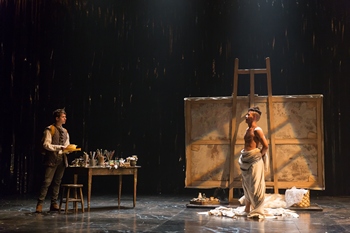 Tannahill's point is to tell the stories that have been eliminated from history: people know the artworks of Sandro Botticelli (Jon Hudson Odom) and Leonardo Da Vinci (James Crichton), but the truths of their lives have been ignored or suppressed. Botticelli was notorious for his affairs with both women and men, but what he comes to feel for Leonardoin his youth, Botticelli's apprenticeis love. As shown through the playwright's deliberately anachronistic lens, Botticelli was a rock star in Renaissance Florence, close friend of the ruler Lorenzo de' Medici (Cody Nickell) and closer friend to Lorenzo's wife Clarice Orsini (Alyssa Wilmoth Keegan), who is depicted as the model for the painter's epic Birth of Venus. Director Marti Lyons works hard to juggle the disparate elements of the drama, which seems at times about to split into its component parts. Odom portrays Botticelli as louche, oblivious to the city's problems outside his gilded circle: income inequality, an outbreak of the plague, and the arrival of Girolamo Savonarola (Craig Wallace), a fanatical priest who couches his calls for the destruction of items he considered frivolous, immoral, or sinful (in a "bonfire of the vanities") in terms of populism. He gains power among people who think he can save the poor from the excesses of the richand don't care if a few "immoral" gay men also get burned. The downside of Tannahill's approach is the winking way he points out the parallels between 1480s Florence, described as "one of the most progressive cities in the world," and contemporary society. Clarice makes her first appearance in a brocaded gown (costumes by Ivania Stack), but later she wears modern loungewear and a sun hat as she watches her husband and lover (also in modern clothes) play squash. The characters talk on smartphones, smoke cigarettes, and eat peanut butter. Since the language is contemporary and on point (Savonarola wants to "return the power to the people" and tells Lorenzo that the excesses of rhetoric are just to get attention), the rest becomes tiresome.