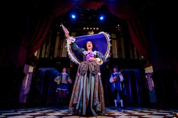 Swale wrote Nell Gwynn as a commission for Shakespeare's Globe in London; the Folger production is its U.S. East Coast premiere. Here is another case of allowing a notable woman to tell her own story: people who know the name only as a royal mistress don't realize that Nell was a pioneer, one of the first women to perform on the British stage, and she accomplished that through talent and bravery. First, a bit of historical background. Charles II (R.J. Foster) went into exile in Europe following the execution of his father, Charles I, in 1649. After the death of the Puritan leader Oliver Cromwell, he returned to take the throne. Theaters, which had been shut down during Puritan rule, reopened and the king issued a royal decree requiring that, for the first time, women ("actor-esses") play female roles onstage. Director Robert Richmond has a fluid command of Swale's dialogue and keeps the action flowing among a succession of scenes. At the beginning of the play, Nell is an orange seller in the theater of the King's Men. After seeing Nell take on an audience member who insults one of the actors during a performance, lead actor Charles Hart (Quinn Franzen) finds her captivating and invites her to join the troupe. Edward Kynaston (Christopher Dinolfo), a famed performer of women's roles, is dismissive that any actual woman could play those roles as well as he, but Nell soon proves herself. Luff sparkles throughout the play as Nell navigates the tricky currents of theatrical success and royal attention. Having come from a squalid backgroundher mother (Catherine Flye) kept a brothelshe understands compromise and taking care of herself. She questions the company's playwright, John Dryden (Michael Glenn), about character motivation and suggests that real women are capable of more nuanced characterizations than men playing women. Foster brings extensive detail to his portrayal of the "merry monarch" derided in his own time as indecisive and shallow ("Maybe my legacy will be one of indecision. Maybe," he says). Charles loves art and beauty, including many women, but he understands how Nell's outspokenness sets her apart from the flatterers and influence-seekers. Dinolfo is amusing as an actor who never breaks character and Franzen presents Hart as a man who knows, and admires, talent when he sees it. Tony Cisek's scenic design uses red brocade curtains and elegant furniture to convey a series of onstage and offstage locations. Costume designer Mariah Anzaldo Hale has created an expansive palette of fine dress for the royal court, elaborate stage costumes (including one memorable hat), and the rougher clothes for the lower classes.