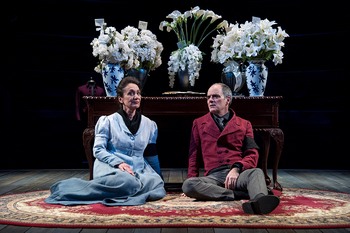 As Posner explains in his program notes, his portrait of JQA is not meant to be historically accurate. He uses Adams, and his family members and intimates, as a lens through which he examines contemporary U.S. political life, especially where integrity fits in the process. Admirably, he never pushes the parallels too far; he allows one character to suggest stoking fear as a way to gain political dominancethen leaves it there. Perhaps because JQA had such a complex and multifaceted personality, Posner has written the character to be performed by all four members of the cast at some point. It's easy to follow who is who because, as costumed by Helen Huang, each actor (two men, one white and one African-American, and two women) dresses in a red frock coat when portraying JQA. While Jacqueline Correa, Phyllis Kay and Joshua David Robinson all perform creditably in their shifting roles, Eric Hissom outshines them with the gravitas and grace he brings to the post-presidency JQA, as well as to his brilliant and chilly father, President John Adams, and JQA's plain-spoken political rival Henry Clay. (Hissom as Clay faces off against Robinson as the presidential JQA; in the next scene, Hissom is JQA and Robinson is his successor, Andrew Jackson.) The 90-minute play jumps into scenes of JQA's life from 1776, when he was 9 years old, to 1847, when he was 80. Correa is JQA the child and, later, the frustrated young lawyer, Robinson the diplomat and president, Hissom the congressman dealing with unthinkable personal loss, and Kay the elder statesman greeting the rising leaders Abraham Lincoln (Correa) and Frederick Douglass (Robinson). The enveloping Kogod Cradle is the perfect setting for this imaginative chamber drama. Meghan Raham's set design consists primarily of chairs, a large carved table that represents the Adams dining room or the Oval Office, and small makeup tables for the performers and racks to hold unworn costumes.
